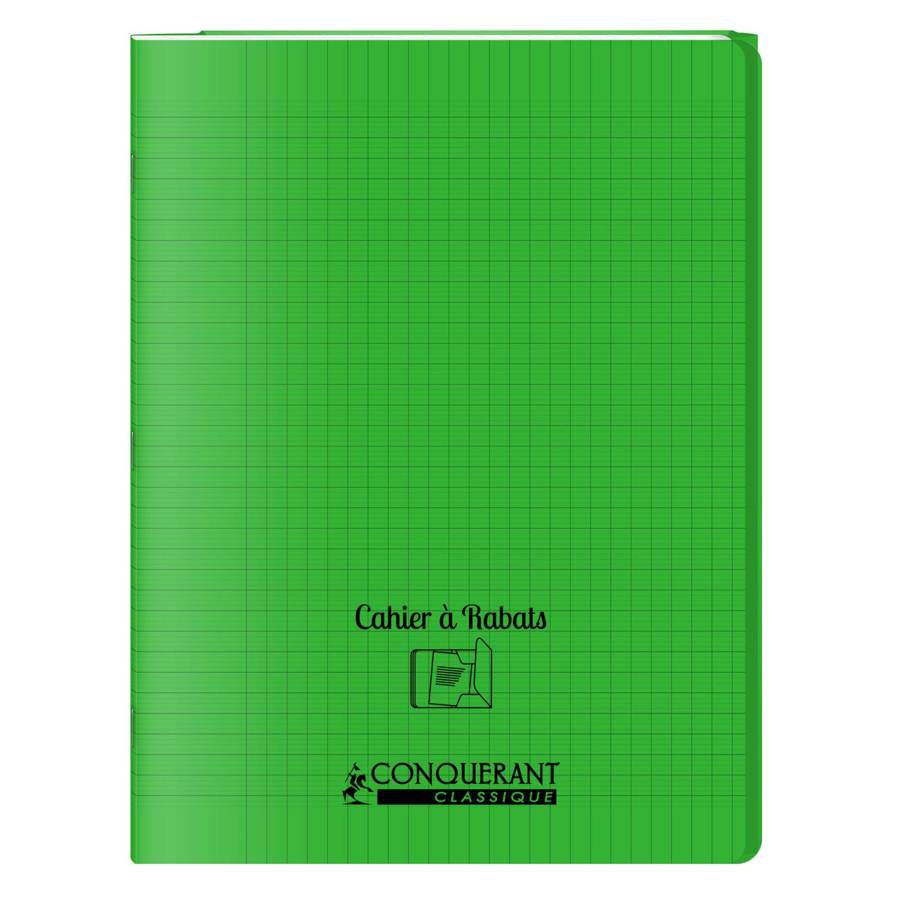 Cahier à rabat agrafé 24x32cm 96P 90G grands carreaux polypro vert