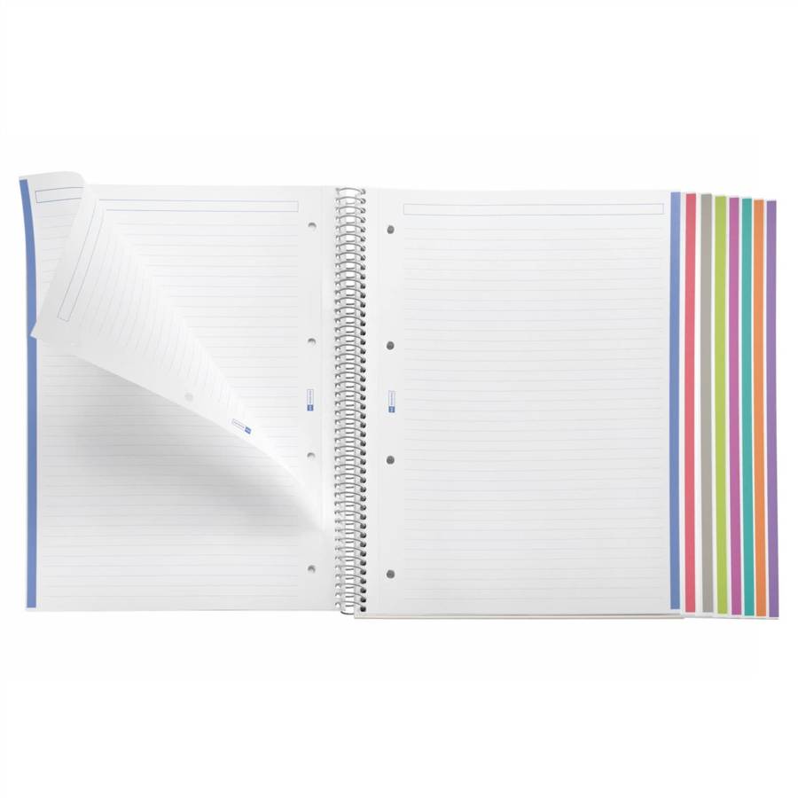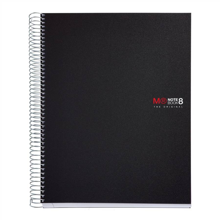 Cahier A4, Notebook The Original, 8 Bandes Colorées, Couverture en Polypropylène Opaque,4 Perforations, 200 Feuilles 70 g/m², Lignage Horizontal 7 mm, Couleur Noir