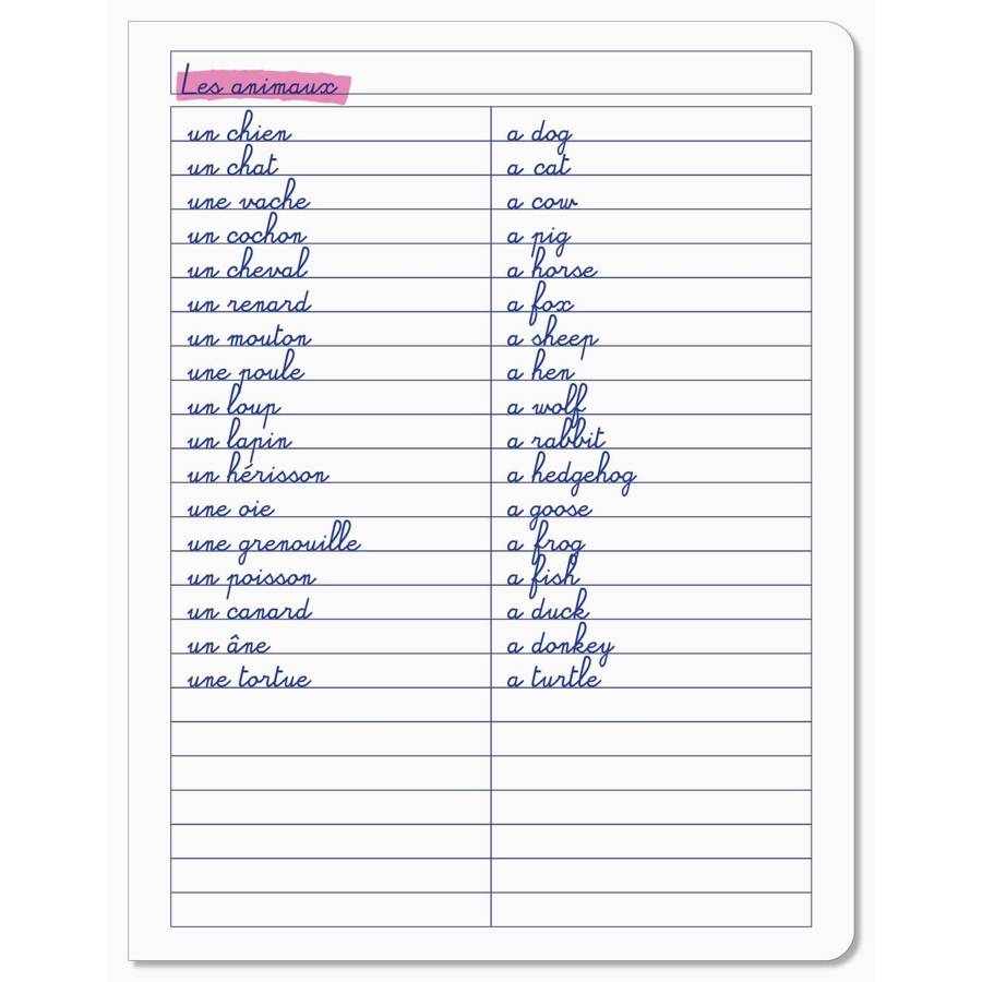 Cahier de vocabulaire polypro17X22 cm agrafé 96P réglure spécifique