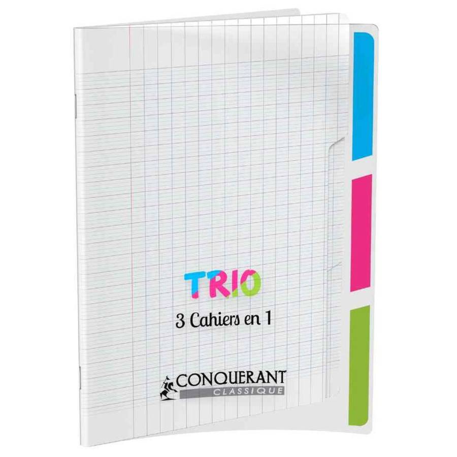 Voir plusDescription du produit CONQUERANT : Le savoir-faire français avant tout ! Pour répondre au mieux au besoin de l'élève, nous avons créé la gamme Conquérant : des cahiers utiles, pratiques et faciles d'utilisation. Tous fabriqués en France dans nos usines situées à Caen, en Normandie, les cahiers Conquérant représentent le savoir-faire français, qui assure une vraie qualité et apporte une solution adaptée à chaque besoin. C'est en étant proches des élèves français et de leurs professeurs, et en les écoutant, que nous avons pu concevoir des cahiers aussi efficaces. Car dès le plus jeune âge, les enfants doivent être accompagnés par les meilleurs outils d'apprentissage. C'est pour cela que la gamme répond à toutes les exigences et les spécifiés des programmes scolaires, afin d'aider l'élève au quotidien et lui permettre d'apprendre au mieux, durant tout son parcours scolaire. En proposant des cahiers adaptés à chaque usage, Conquérant vous offre le meilleur ! Le cahier incolore agrafé Conquérant Classique Trio est un véritable compagnon de classe ! Fabriqué en France, ce cahier est disponible au petit format scolaire 17x22cm et il est composé de 96 pages, chacune dotée de la réglure Grands Carreaux Seyès, en 2 couleurs, qui assure une meilleure lisibilité pour l'élève. La réglure a été développée en partenariat avec les ophtalmologistes et permet de réduire l'effet de la fatigue visuelle chez l'élève, tout en améliorant efficacement sa concentration. Sa couverture est en polypro lisse et translucide. Elle assure un cahier souple et robuste, qui résistera aux rayures, aux éclaboussures et aux déchirures. Le cahier Conquérant Classique est doté de la reliure piqûre ?aussi appelée "reliure agrafée"?, la plus populaire et la plus répandue. Elle procure un réel confort d'écriture et d'utilisation. Flexible et fin, le cahier agrafé est très léger et pratique. Le cahier Trio est incroyablement efficace et très utile car il est divisé en 3 sections de 32 pages chacune, pour compartimenter ses cours et son organisation. 3 onglets découpés viennent compléter le cahier polypro Trio, pour une identification rapide du contenu : 1 couleur par matière. Trio, c'est 3 usages différents dans un même cahier, pour alléger les cartables tout en répondant aux besoins du programme. Caractéristiques du produit Format scolaire - Largeur : 17cm x Hauteur : 22cm Réglure à grands carreaux Seyès, en 2 couleurs, avec une marge à gauche 96 pages - Epaisseur 90g Couverture plastique translucide, fabriquée en polypropylène Reliure agrafée 3 onglets colorés en polypro Couleur de la couverture : Incolore Certifié Ecolabel EU ?faible impact environnemental de la fabrication du papier? et certifié PEFC™ ?gestion durable des forêts? Fabriqué en France