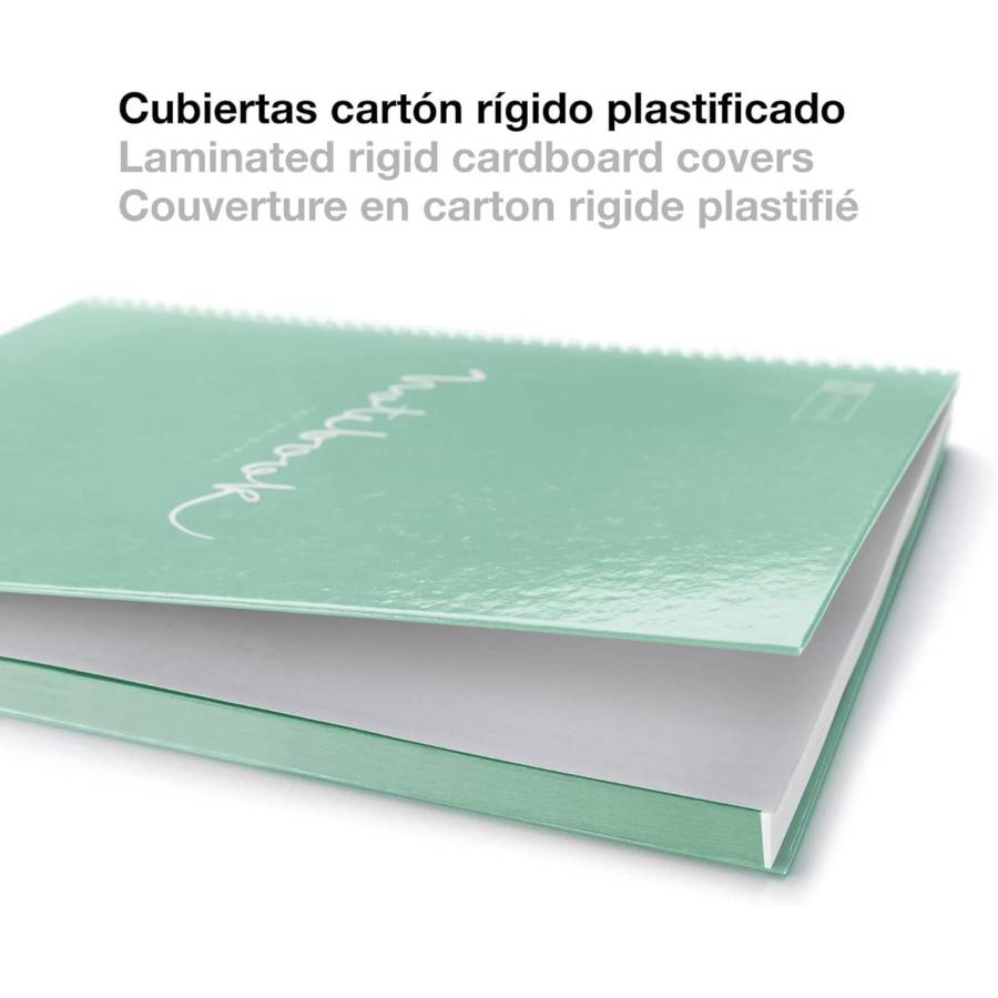 Voir plusCahier A4 avec 1 bande de couleur et 80 feuilles micro-perforées pour un démarrage propre et avec 4 trous pour l'archivage. La rayure intérieure est un quadrillage de 5 x 5 mm, avec en-tête pour les titres. L'impression offset de haute qualité des rayures offre une plus grande subtilité et propreté, mettant en valeur l'écriture, facilitant la lecture et l'étude. Dimensions de la feuille : 210 x 297 mm (A4). Papier extra opaque satiné de 90 g/m². L'écriture est si douce qu'écrire sur notre papier est un plaisir. Empêche l'encre de traverser, et grâce à son séchage rapide, son irradiation est également freinée. Couverture en carton extra rigide qui lui apporte résistance, flexibilité, légèreté et durabilité. Spirale continue avec système COIL-LOCK qui permet d'ouvrir à plat du carnet, en plus de tourner complètement et d'éviter les accrocs. Couleur : vert aqua