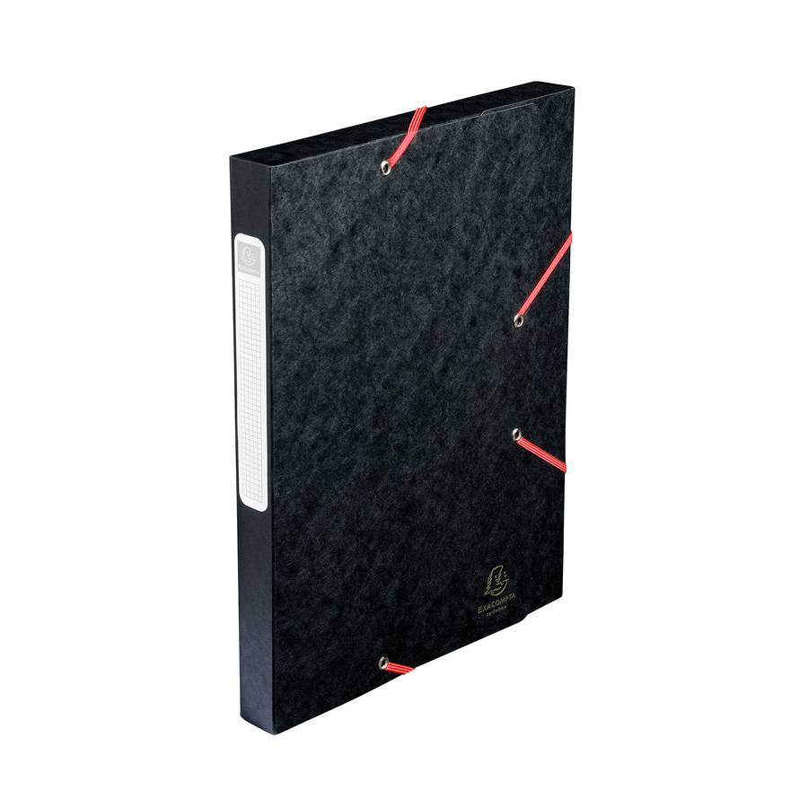 EXACOMPTA Chemise 3 rabats et élastique Exatobox dos de 3 cm, en carte lustrée 5/10e noir