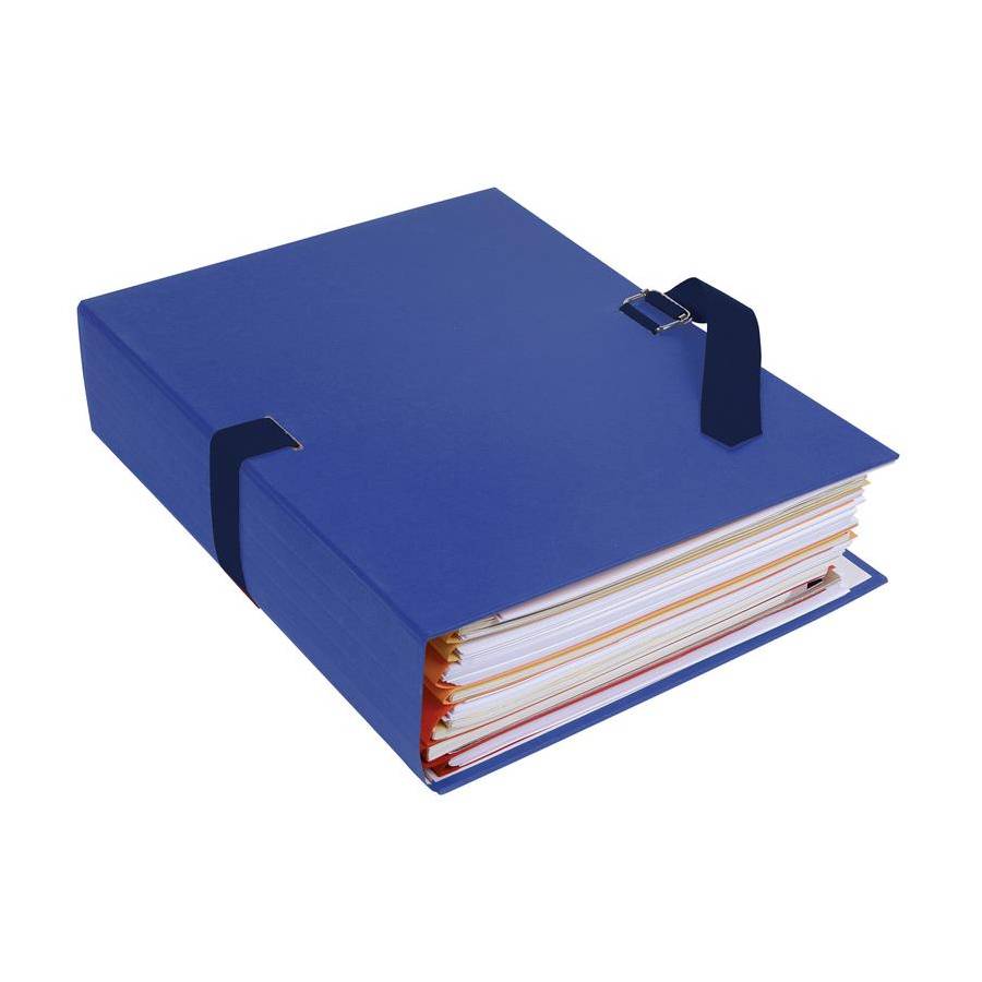 EXACOMPTA Chemise à dos extensible jusqu'à 13 cm. Fermeture par sangle et boucle à coulisseau cranté. Couleur : bleu foncé Couleur de sangles : bleu foncé Matière : Carton recouvert papier Épaisseur : 10/10e Format à classer : (240x320) et A4 Type de sangle : boucle à coulisseau cranté Capacité (feuillets 80gr.) : 1000 Dos : 130mm Format extérieur : 24x32cm Fermeture : Sangle