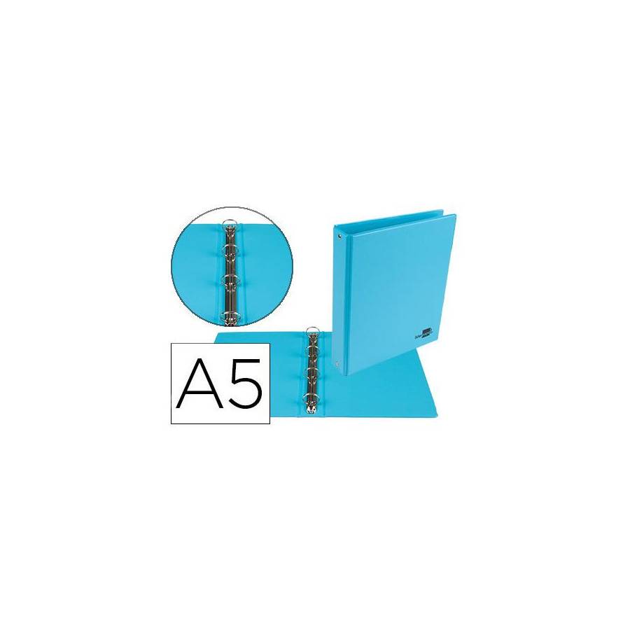 Classeur 4 anneaux ronds 25mm a5 carton rembordé pvc coloris bleu ciel