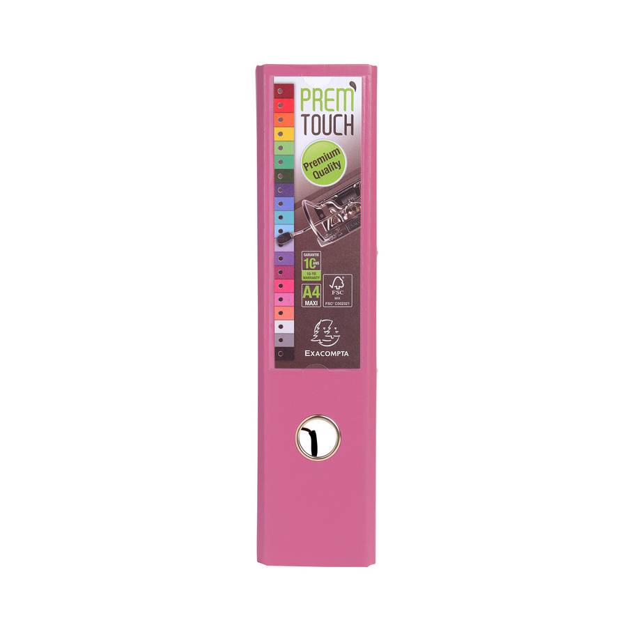 Classeur EXACOMPTA à levier Couleur rose Dos de 80mm Format A4 2 anneaux Personnalisable avec le grand porte-étiquette de couverture Oeillet de préhension Le Classeur à levier Prem'Touch est équipé d'une nouvelle mécanique plus robuste. Résistante, elle est aussi ergonomique grâce à son bouton poussoir. Le classeur Prem'Touch possède des renforts en coin pour durer. A4 maxi, il s'adapte à tout type de classement. En carton recouvert polypropylène, Prem'Touch est certifié FSC®. Pour une qualité au naturel…