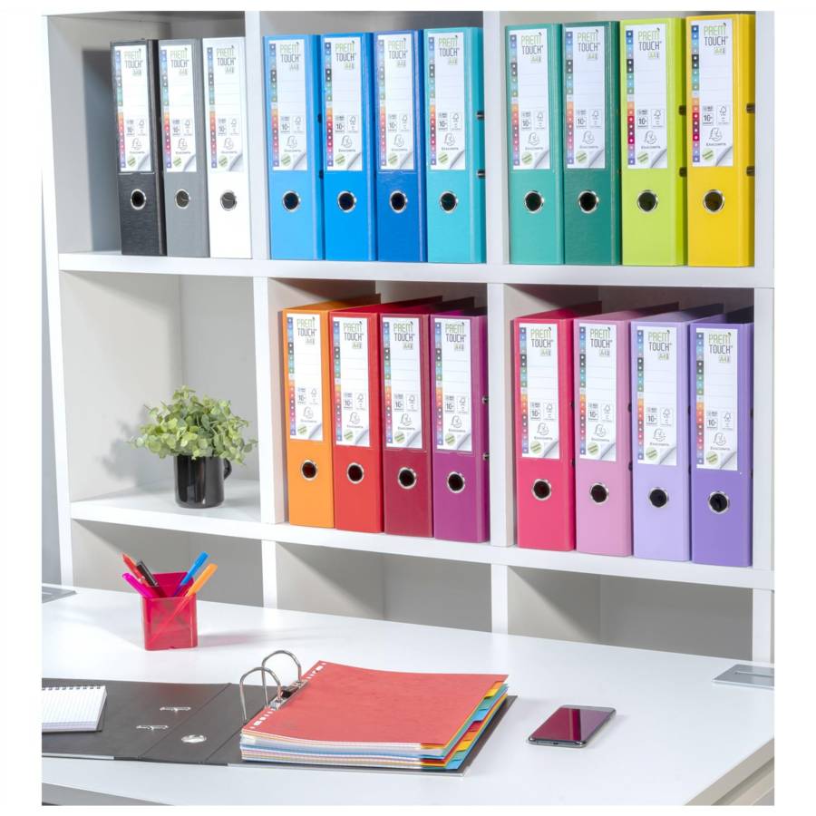 Classeur à levier Prem'Touch intérieur et extérieur en polypropylène - Dos 80mm - A4 maxi Equipé d'une mécanique Prem'Touch, très robuste mais aussi ergonomique grâce à son bouton poussoir. Garanti 10 ans, le classeur Prem'Touch possède des renforts en coin pour durer. A4 maxi, il s'adapte à tout type de classement. En carton recouvert polypropylène, Prem'Touch est certifié FSC. Pour une qualité au naturel. OEillet de maintien et de préhension.