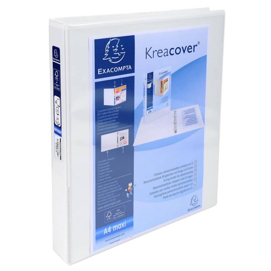 Classeur personnalisable rigide 2 poches KreaCover 2 anneaux en D 25mm - A4 maxi. Blanc