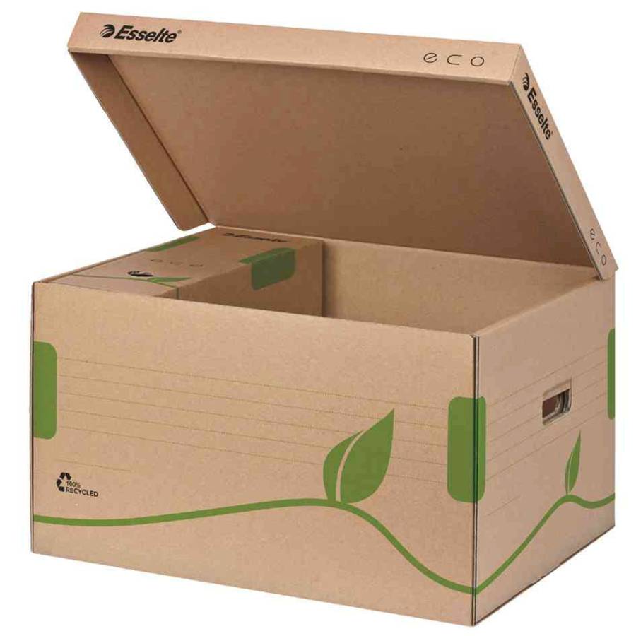 Esselte Container d'archives à couvercle ECO, marron A base de carton 100 % recyclé, 100 % recyclable, certifié FSC, Pour format A4+ Automatique pour montage rapide, pour archivage de longue durée, adapté pour 5 boîtes d'archive dos de 80 mm ou 4 de 100 mm, Dimensions: (L)345 (H)439 x (P)242 mm, (623918)