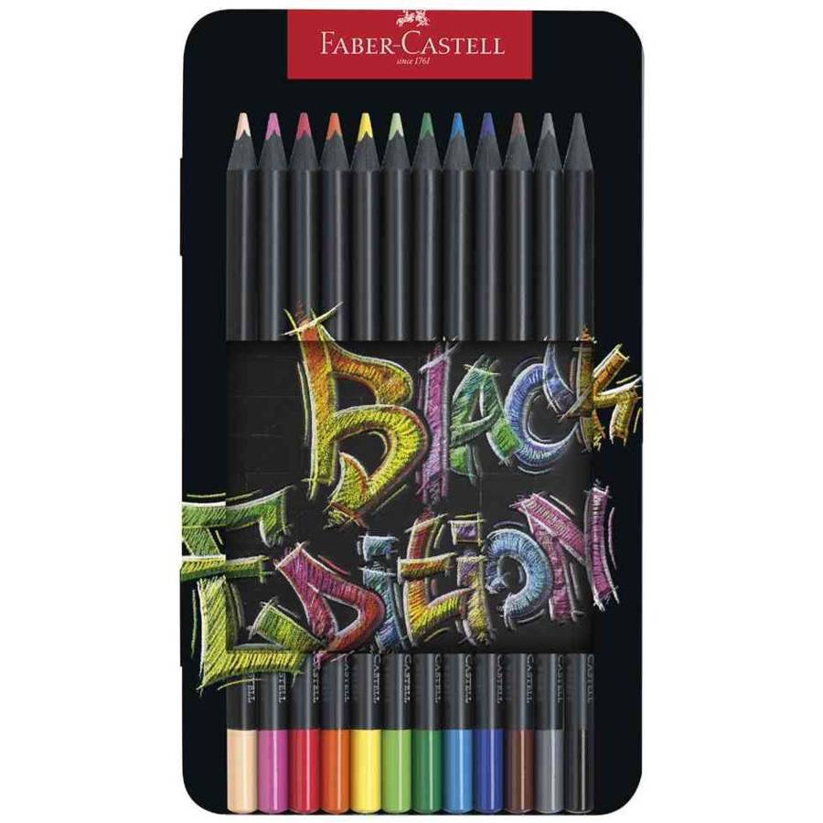 FABER-CASTELL Crayon de couleur Black Edition, étui de 12