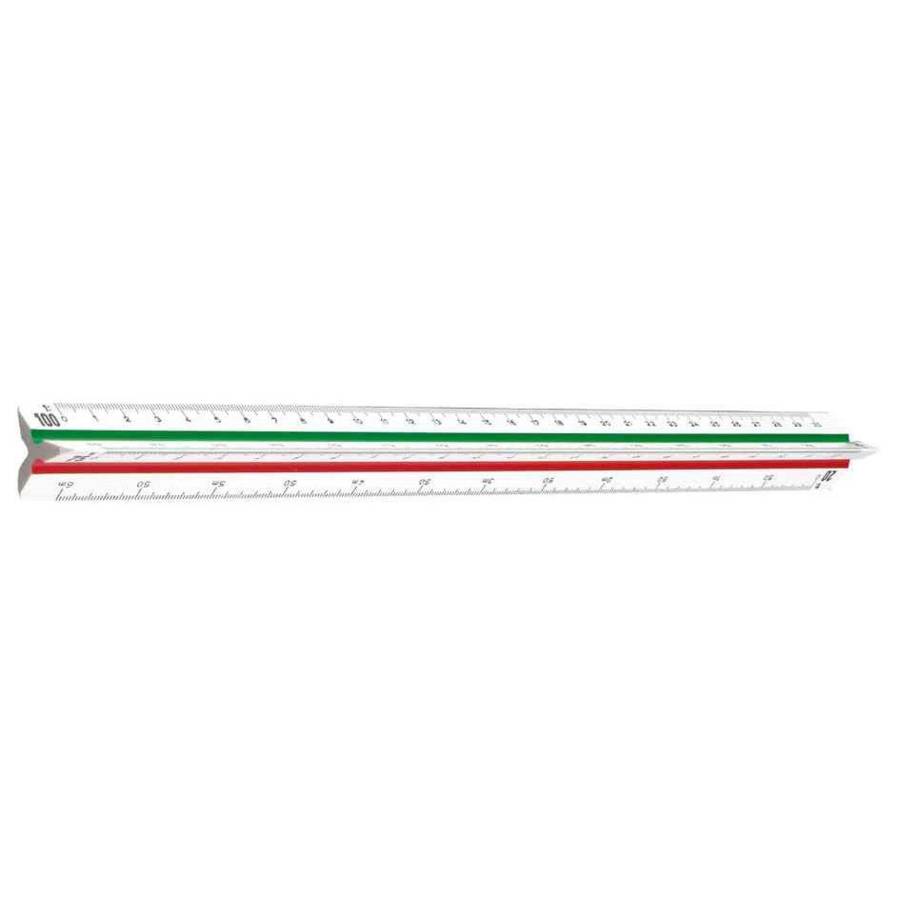 Wonday Echelle de réduction Architecte (I), plastique blanc Graduation précise, triangulaire, dimensions en mètre et en centimètre, avec 3 gorges creuses colorées Longueur: 30 cm Graduation: 1:20, 1:25, 1:50, 1:75, 1:100, 1:125