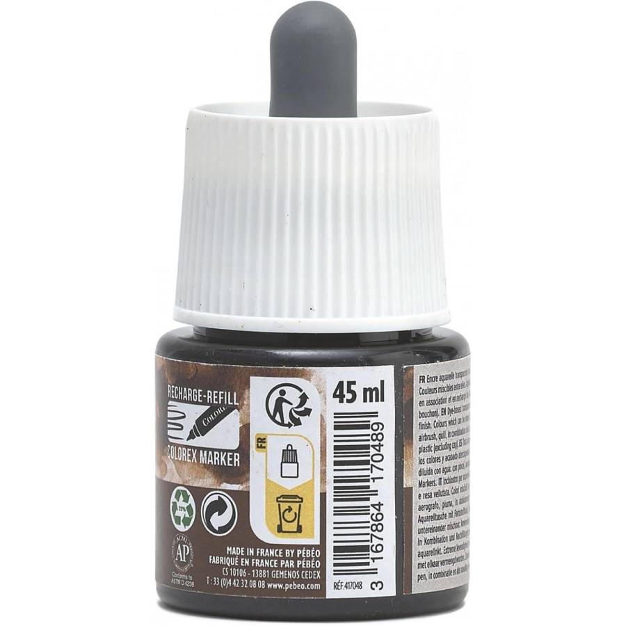Encre aquarelle transparente base colorant. Extrême vivacité des couleurs, rendu velouté et aplats parfaitement unis. Les couleurs sont miscibles entre elles et s'appliquent pures ou diluées. Idéal pour illustration aquarelle, BD, manga, design, calligraphie et art journaling. Nuancier de 60 couleurs. Pipette précision pour un travail direct à la pipette et la recharge des Colorex Markers. Application: pinceau, pinceau à réservoir d'eau, aérographe, plume, en association et en recharge des Colorex marker