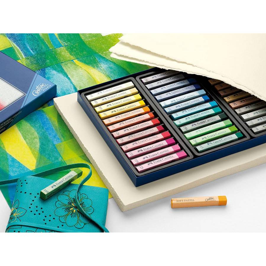 FABER-CASTELL mini craies pastel CREATIVE STUDIO, étui de 24 Couleurs brillantes, bonne stabilité à la lumière, rendu de