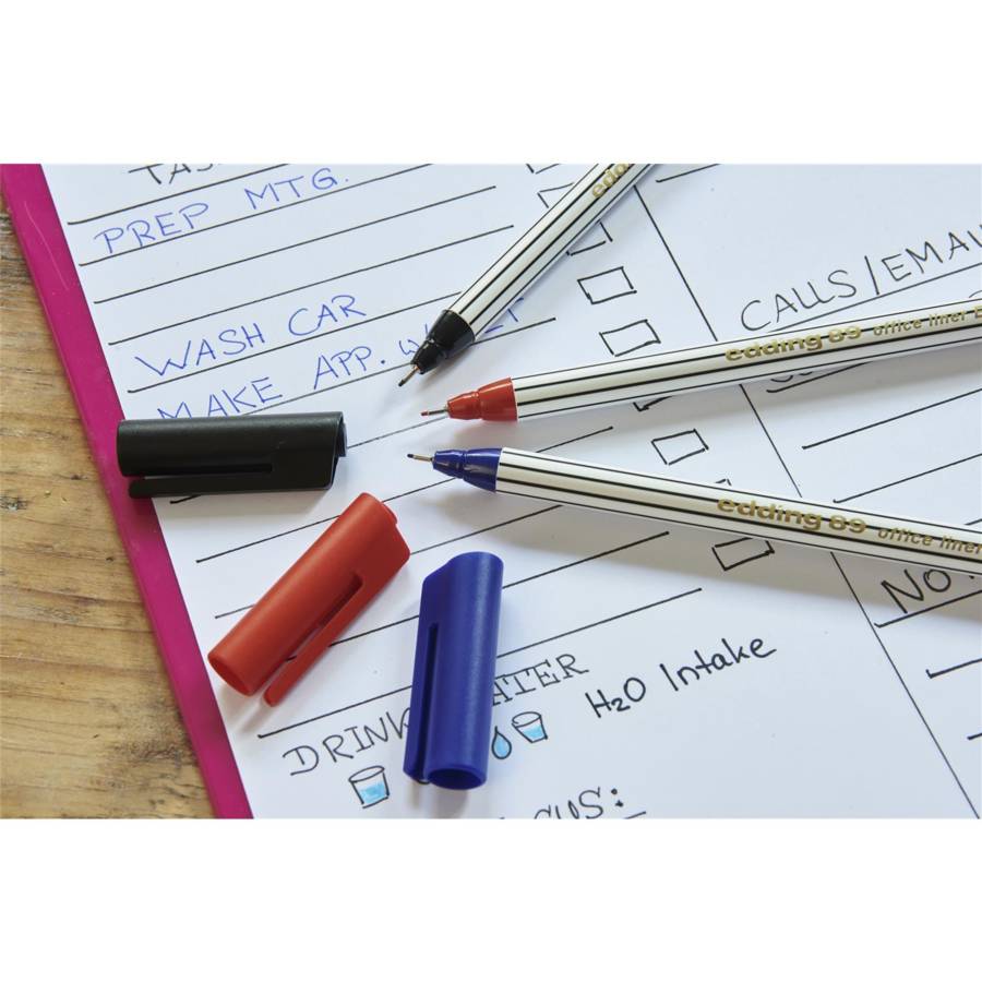 Quand on manque de place, la meilleure façon d'y parvenir, c'est d'utiliser le feutre fin edding 89 Office Liner, dont la pointe gainée de métal au tracé très fin permet de mettre par écrit même les situations les plus complexes sur un espace...