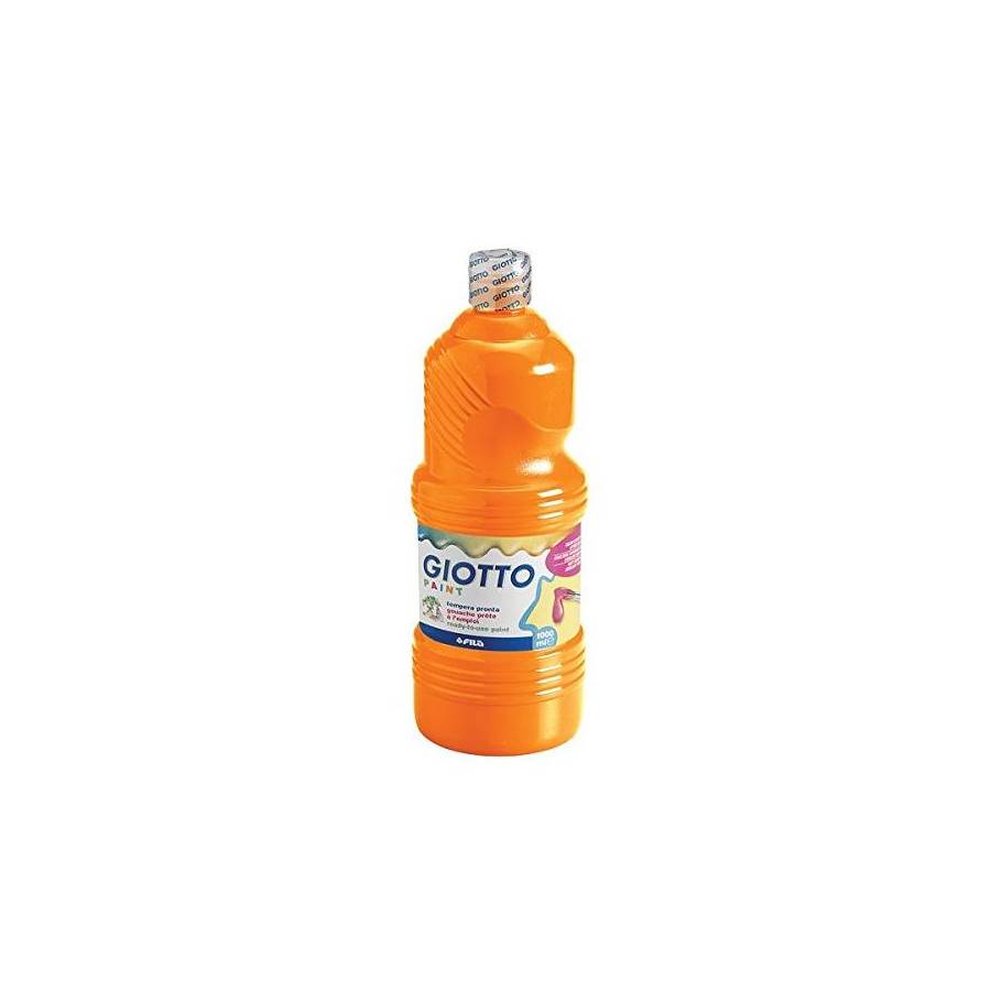Flacon de 1 Litre de gouache liquide GIOTTO. Coloris orange. Gouache prête à l'emploi, excellent rendu, pigments de qualité supérieure à fort pouvoir couvrant. Diluable à l'eau, s'utilise sur papier, bois, carton...