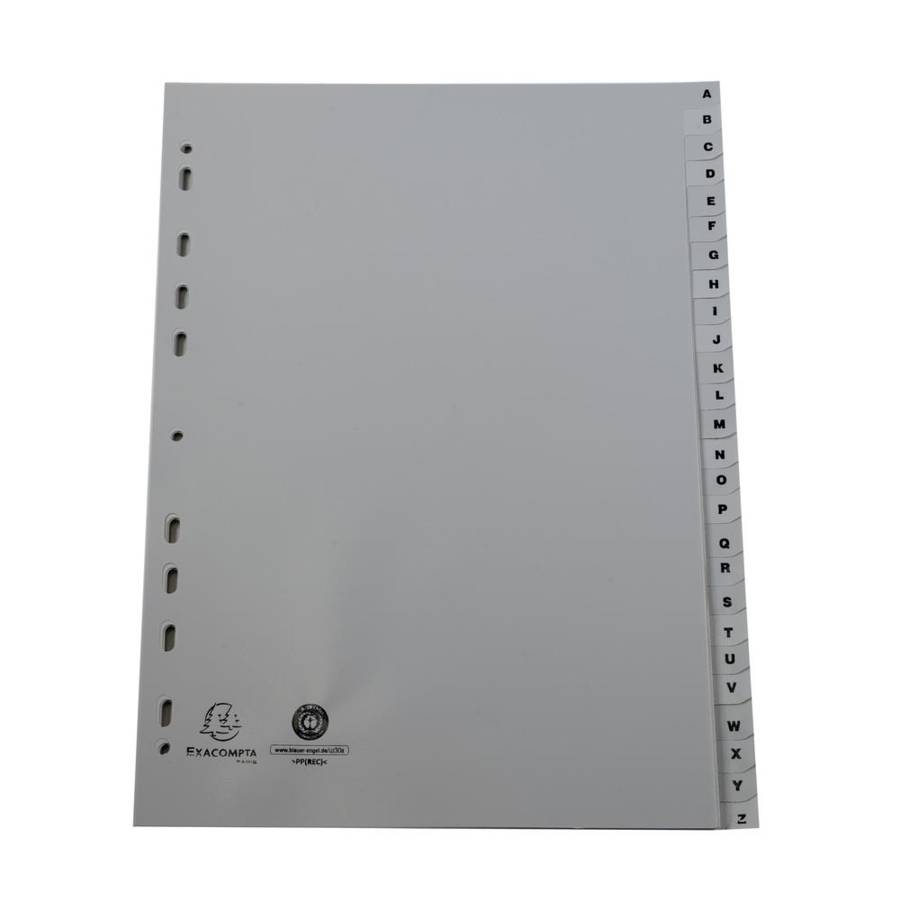 Intercalaires imprimés alphabétiques PP recyclé gris - AZ 26 positions - A4 - Gris