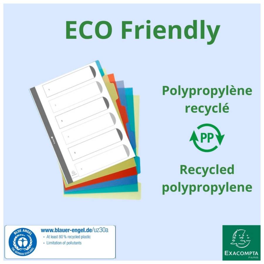 Intercalaires poplypropylène recyclé Forever® 6 positions - A4 - Couleurs assorties