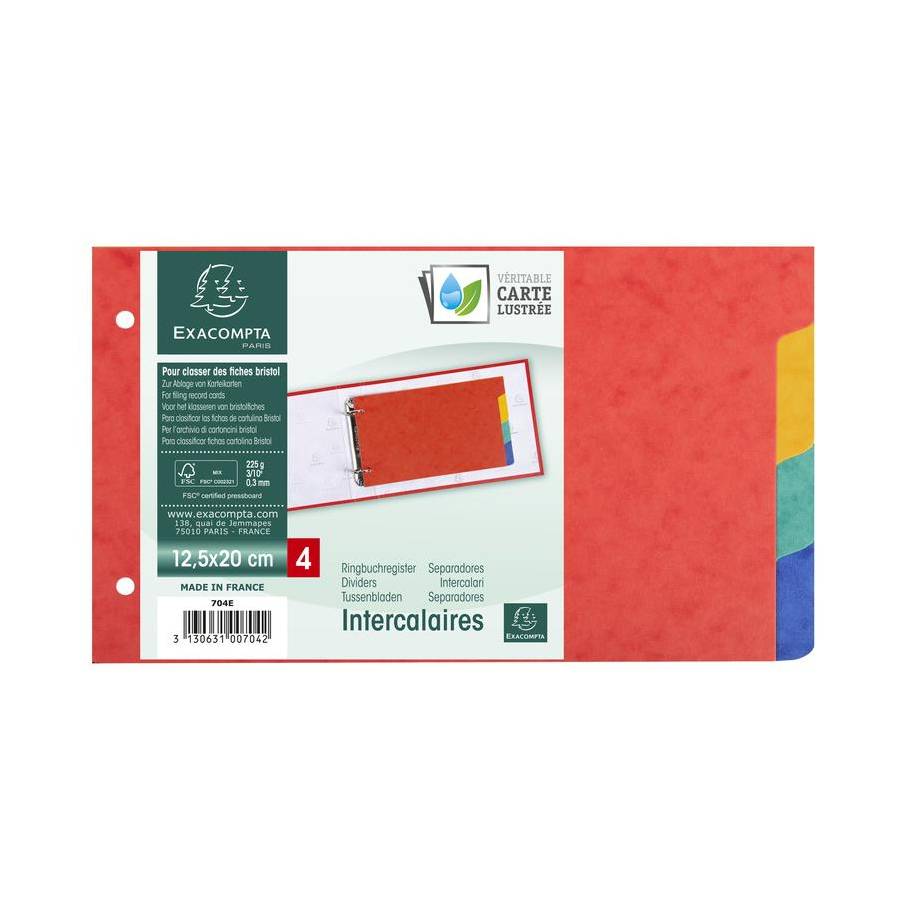 Intercalaires pour fiches bristol en carte lustrée 225g/m2 4 positions - 125x200mm