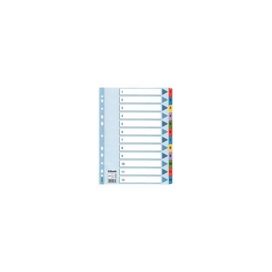 ESSELTE - Intercalaires répertoire numérique 1-12, A4 Mylar, en couleurs