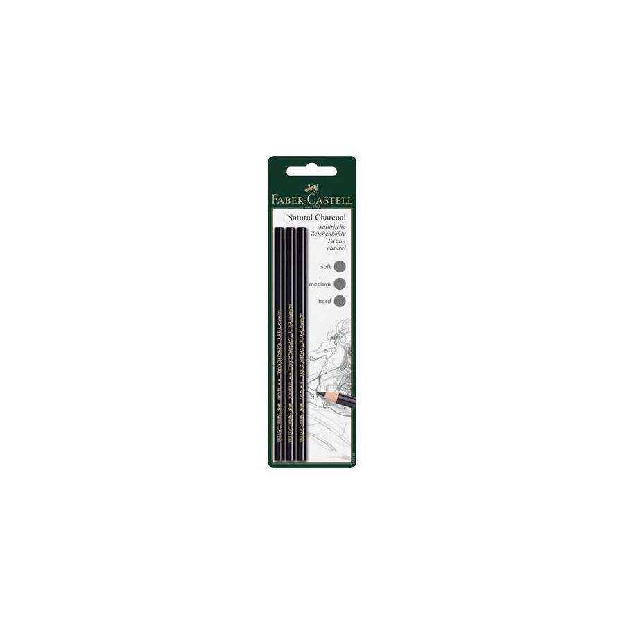 Voir plusPour le dessin, le fusain est le matériel le plus ancien du monde. Il se laisse très facilement étaler et estomper, il peut être corrigé facilement et il peut être recouvert de peinture plusieurs fois. Déjà les anciens maîtres étaient fascinés par leur couleur bleuâtre. Les crayons fusains font preuve d'un noir beaucoup plus foncé. Le fusain compressé, mélangé avec de la suie et de l'argile, donne une couleur noir foncé au crayon fusain et permet la production de différentes degrés de dureté. - Crayon fusain Pitt de première qualité - Sans graisse ni huile - Traitbleu-noir - Degrés de dureté: tendre, moyen, dur - A tailler avec unemachine à tailler 180963/181463 ou avec couteau grattoir 181398 - Disponible à l'unité, en blisters ou en sets