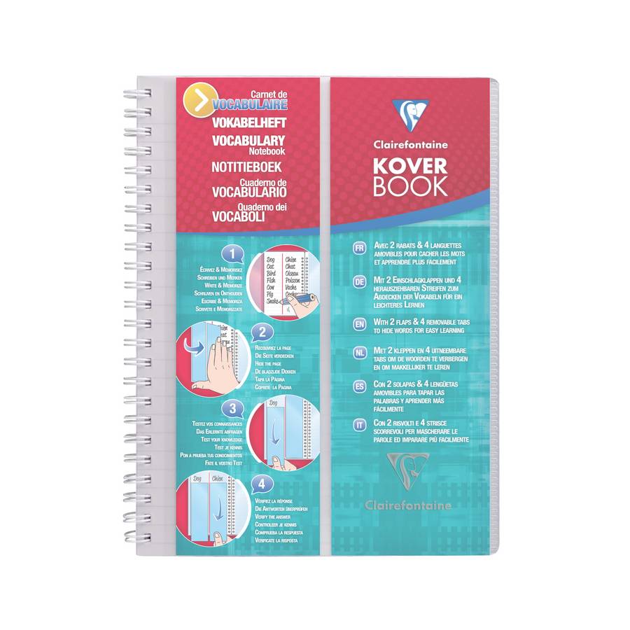 Clairefontaine Kover Book carnet vocabulaire reliure intégrale 14,8x21 100p Ligné + marge centrale polypro transp. Incolore