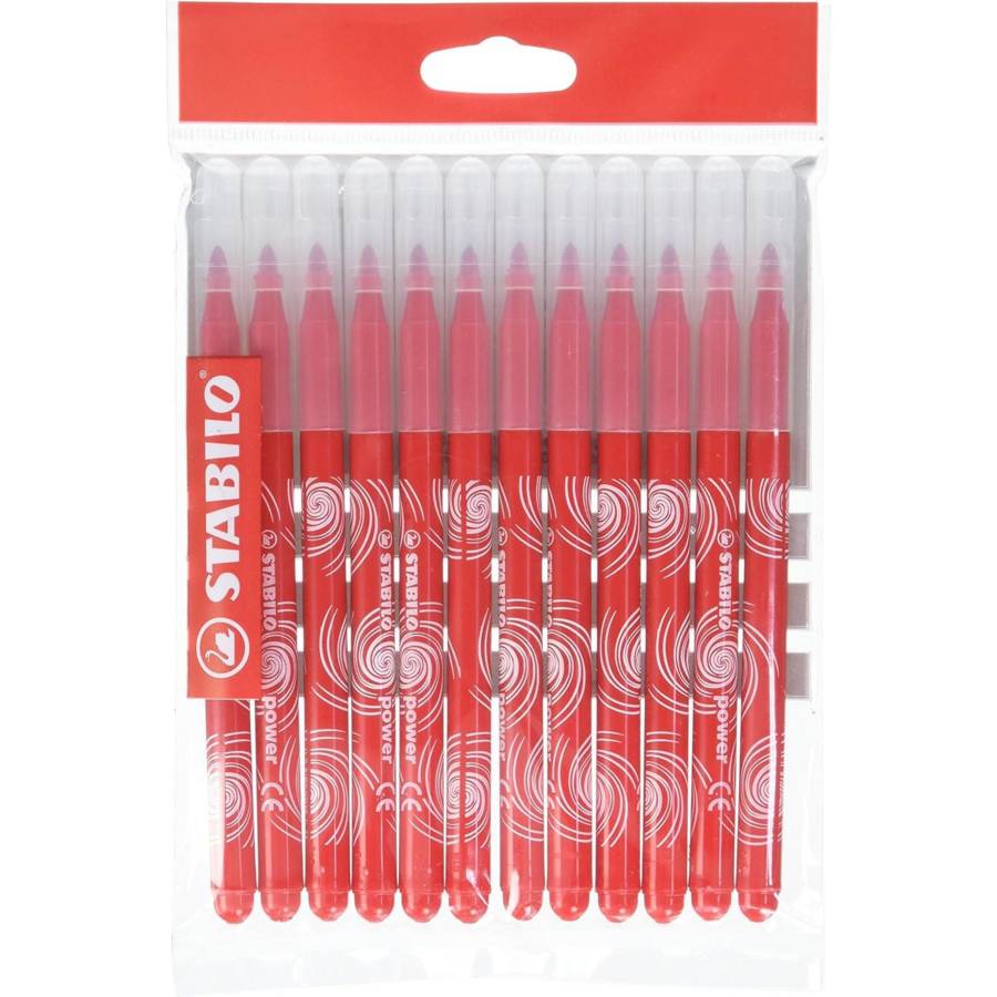 Lot de 12 feutres de coloriage power Rouge, recharge coffret STABILO Schoolpack