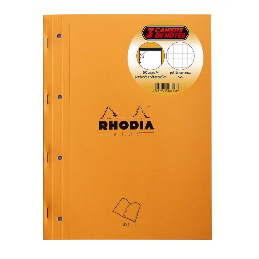 Lot de 3 Blocs de Cours Rhodia Orange Side A4+ 160p 80g Q5x5 Perf.4T