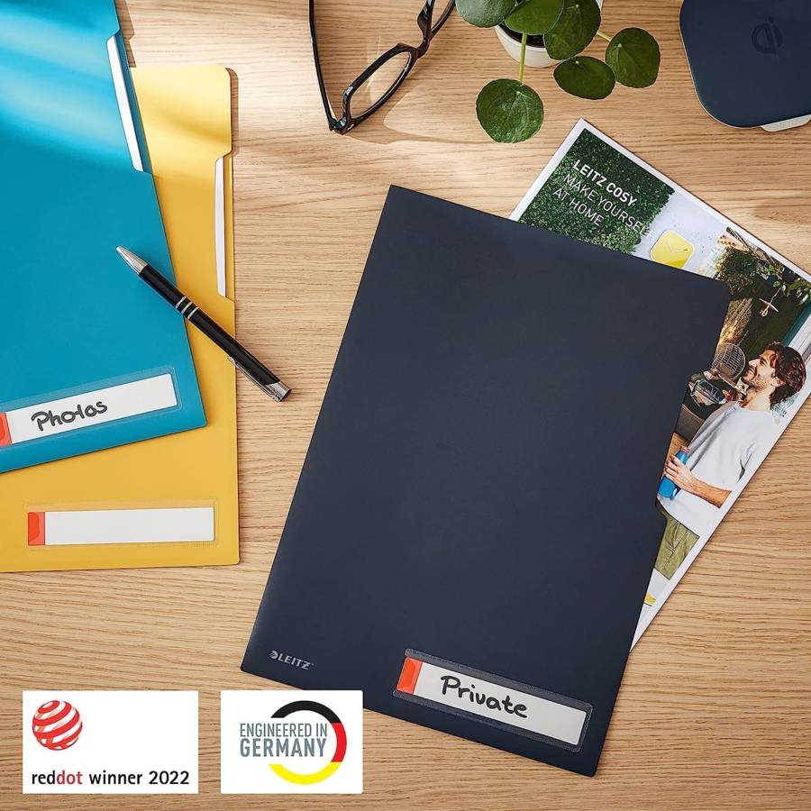 Chemise en matériau opaque pouvant contenir jusqu'à 40 feuilles (80g/m²) idéale pour le classement de documents confidentiels Porte-étiquette et onglet d'insertion pour identifier clairement le contenu, Attribuez un code couleur aux documents pour les retrouver plus facilement Fabriquée à partir de plastique recyclé et sans acide pour préserver vos documents À mélanger et assortir aux autres produits de qualité premium de la gamme Leitz Cosy pour allier le confort de la maison à la productivité de l'environnement de travail