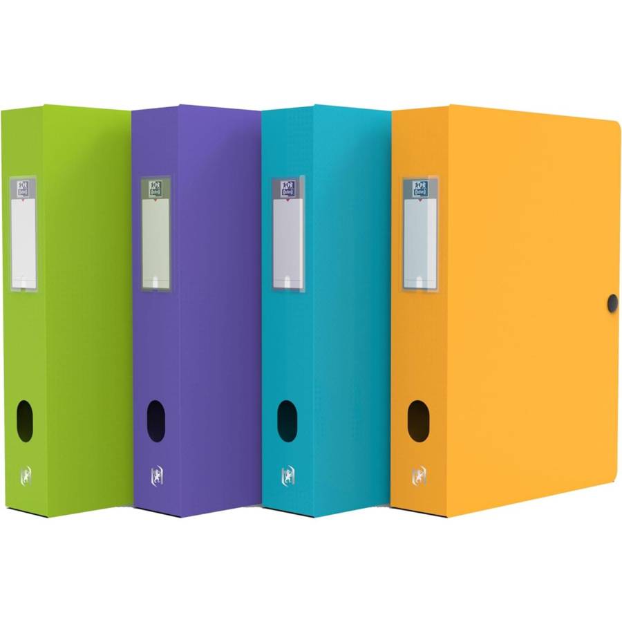 Oxford - Lot de 8 Boîtes de classement Memphis Epaisseur de dos de 80 mm Matière : polypropylène 7/10e, grain structure Fermeture par bouton pression Porte étiquette au dos Dimensions : 320 x 240 mm ( pour format A4 ) Assorti dans les couleurs: bleu aclair, violet, vert clair, beige, en pack de 8 pièces