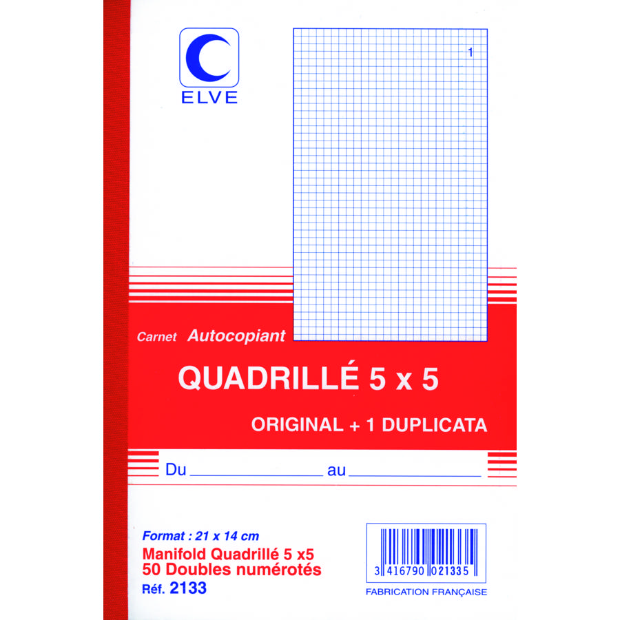 Elve - Manifold Autocopiant Quadrillé 5 x 5 210 x140 mm 50 Feuillets Dupli