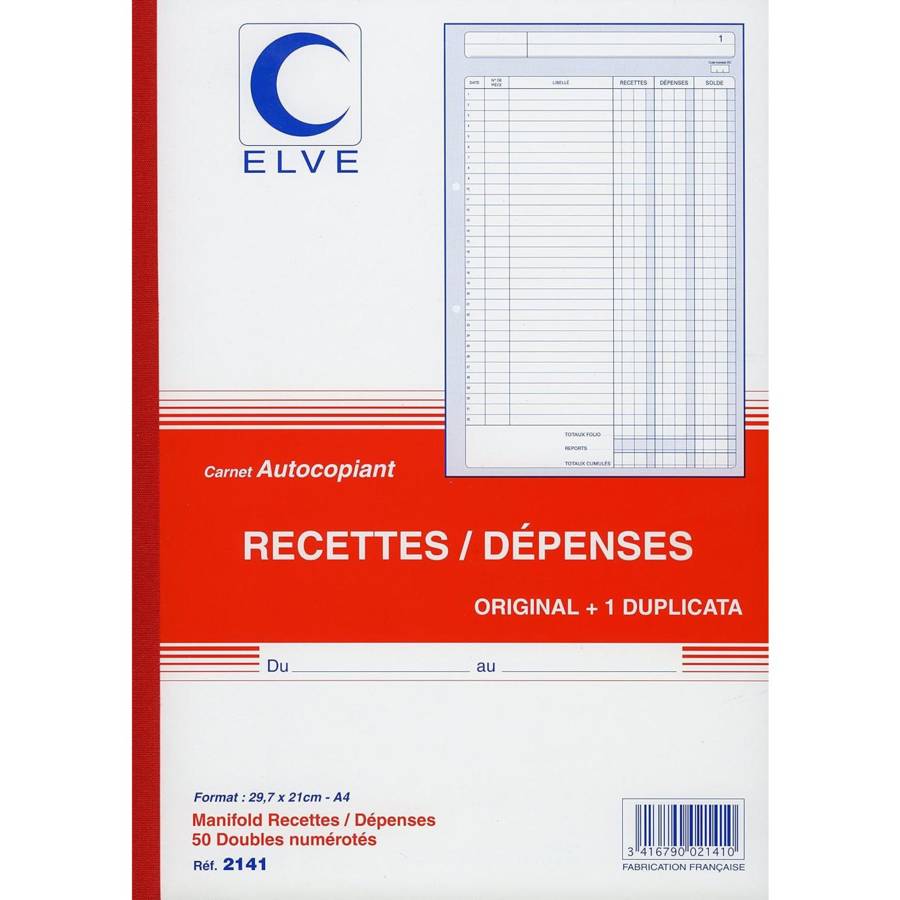 Elve - Manifold autocopiant recette/dépense Format 21x29,7cm 50 feuillets dupli