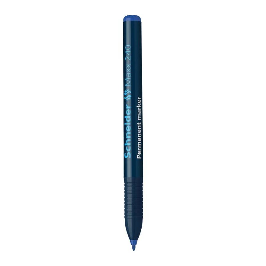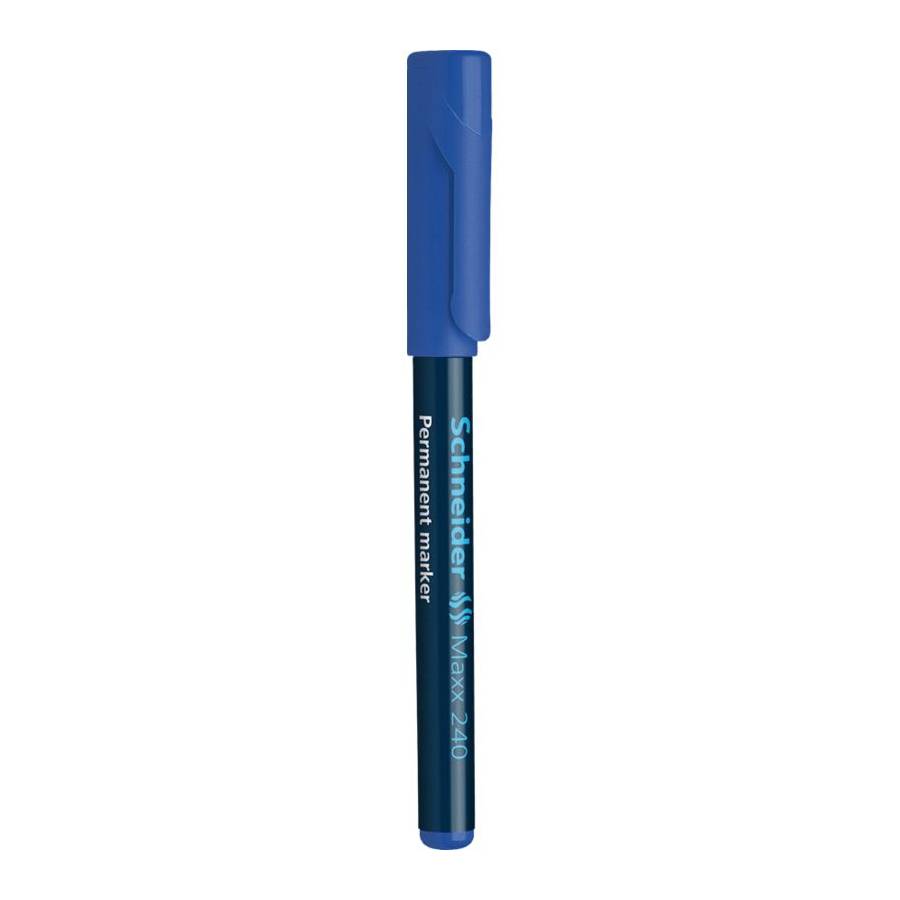 Marqueur permanent avec pointe ogive, épaisseur de trait 1-2 mm. Couleur d'encre bleue. Ecrit sur carton, papier, plastique, verre, métal, bois, et autres matériaux. Corps composé à 92 % en plastique recyclé. L'encre sèche rapidement, est résistant á l'eau et à la lumière. Le modèle cap-off peut rester ouvert pendant 2-3 jours sans sécher. L'encre est faible en odeur, sans toluène et xylène. Modèle de poche fine equipé d'un capuchon avec clip pratique.