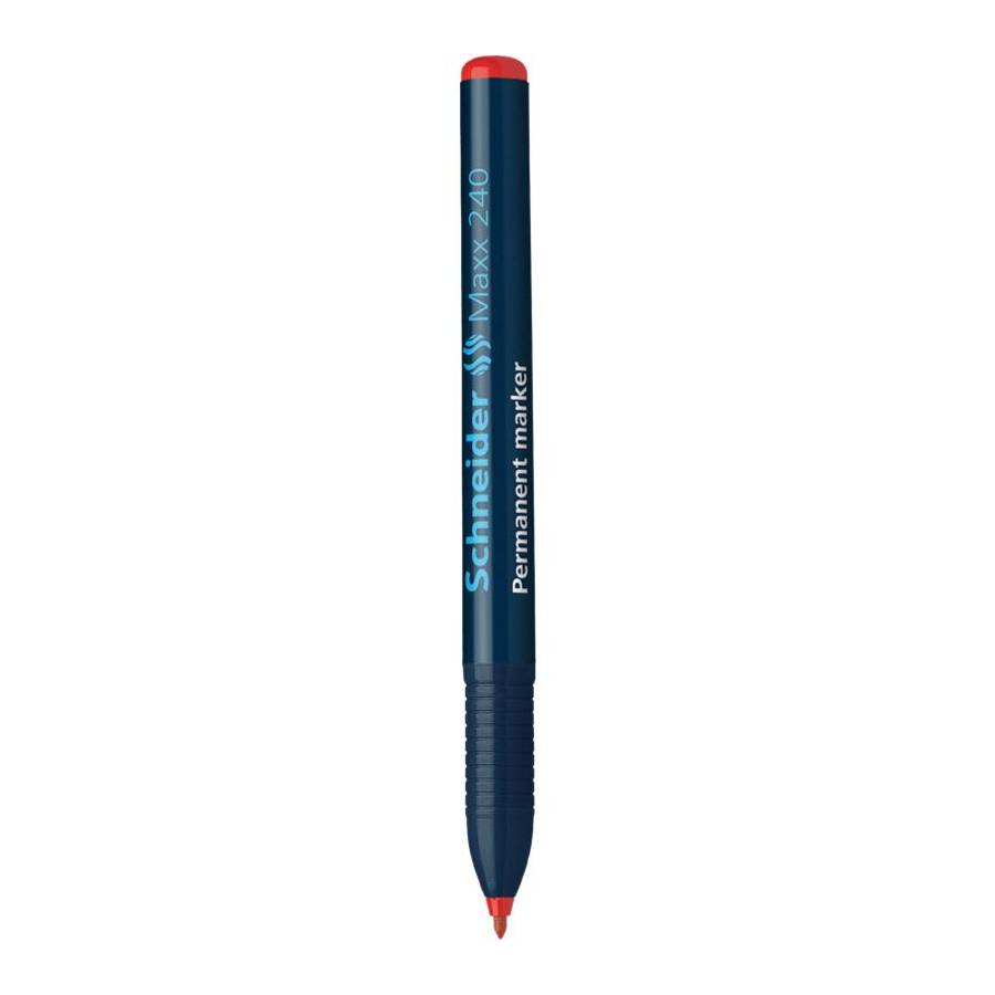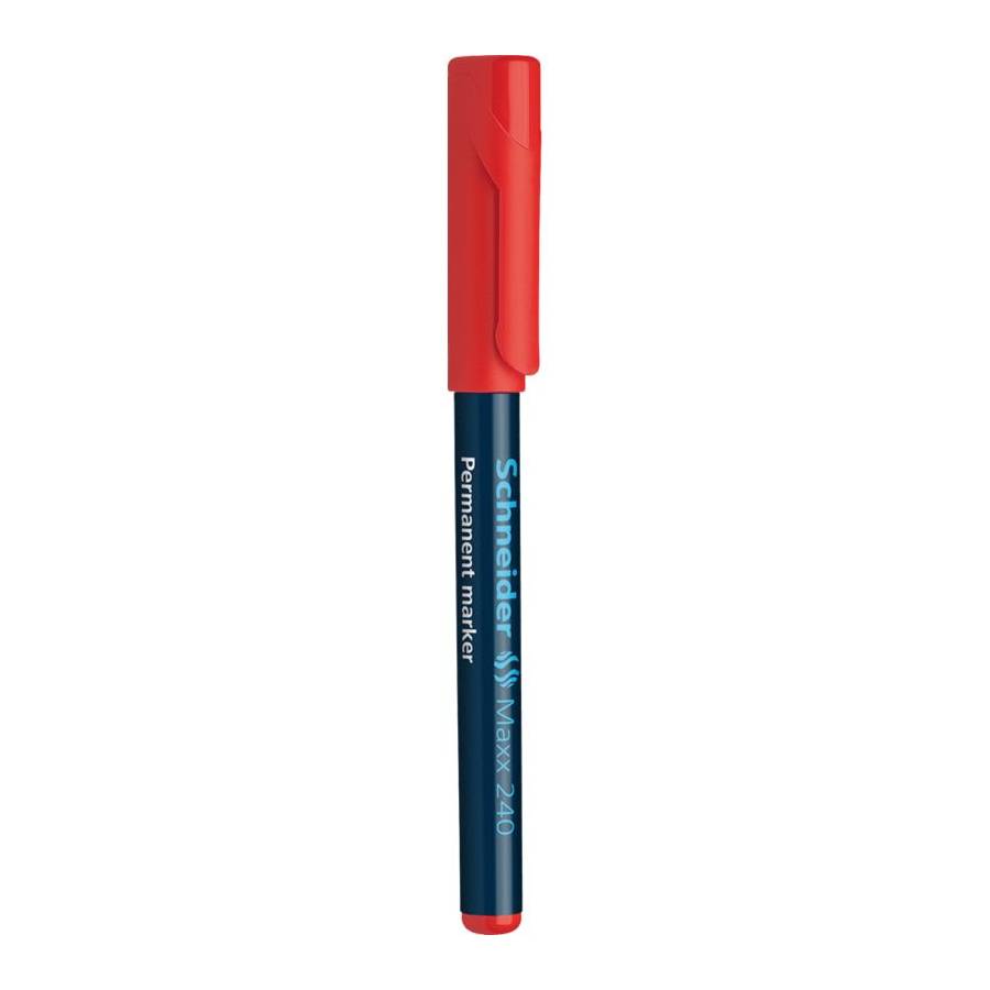 Marqueur permanent avec pointe ogive, épaisseur de trait 1-2 mm. Couleur d'encre rouge. Ecrit sur carton, papier, plastique, verre, métal, bois, et autres matériaux. Corps composé à 92 % en plastique recyclé. L'encre sèche rapidement, est résistant á l'eau et à la lumière. Le modèle cap-off peut rester ouvert pendant 2-3 jours sans sécher. L'encre est faible en odeur, sans toluène et xylène. Modèle de poche fine equipé d'un capuchon avec clip pratique.