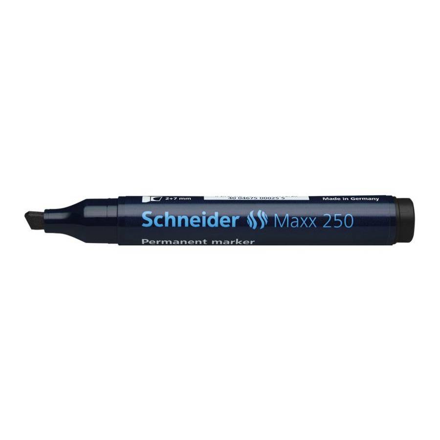 Marqueur permanent avec pointe biseautée, épaisseur de trait 2+7 mm. Couleur d'encre noire. *Le corps est en plastique recyclé à 95%. Ecrit sur carton, papier, plastique, verre, métal, bois, et autres matériaux. L'encre sèche rapidement, est résistant á l'eau et à la lumière. Le modèle cap-off peut rester ouvert pendant 2-3 jours sans sécher. L'encre est faible en odeur, sans toluène et xylène. La nouvelle forme plus longue et fine contient plus d´encre pour une durée de marquage maximale. Le marqueur a un capuchon avec clip pratique et est rechargeable avec le flacon d´encre Maxx 669 refill station.