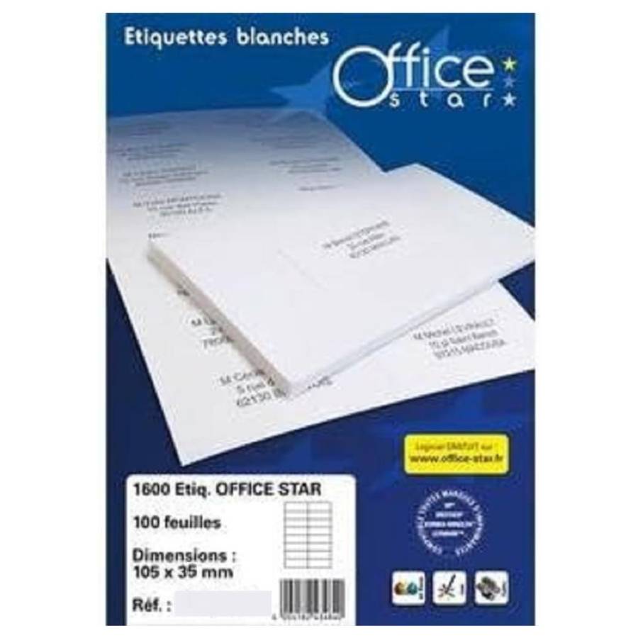 OFFICE STAR Boite de 1600 étiquettes multi-usage blanches 105X35mm OS43423