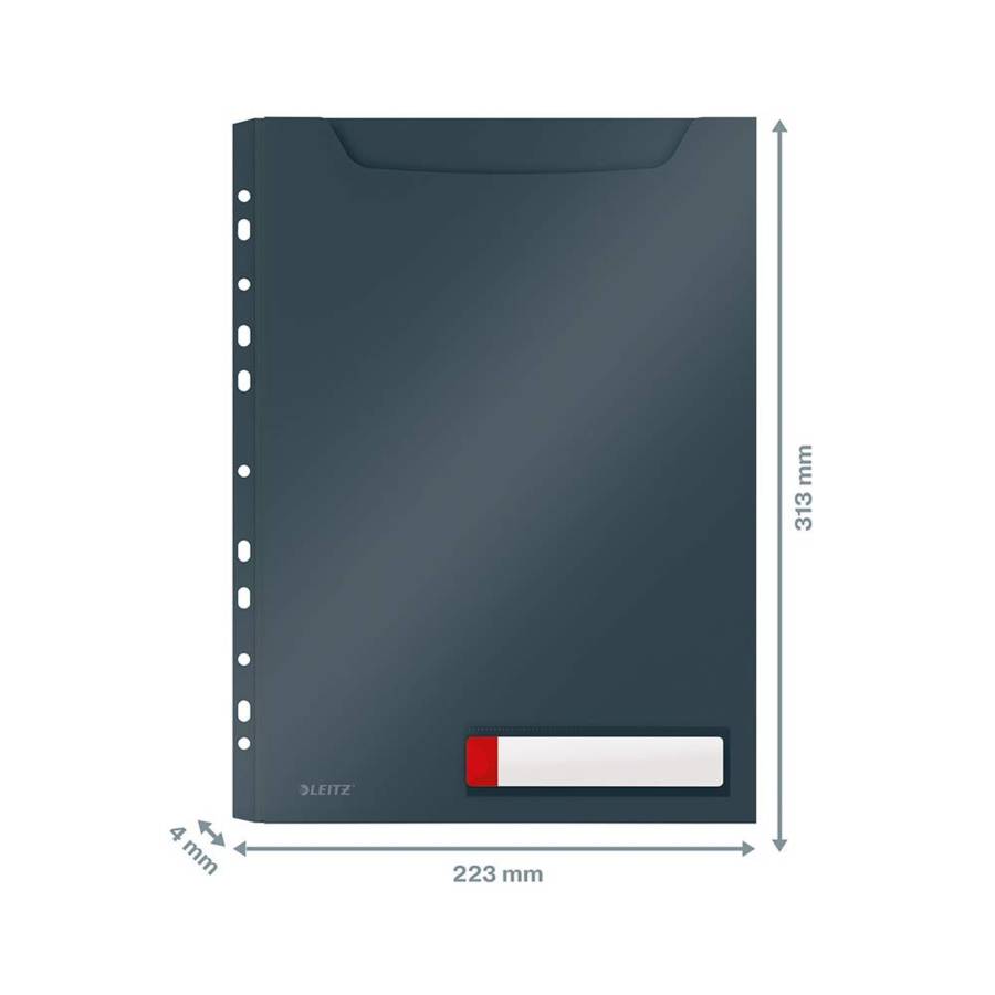 Spécialement conçue pour le stockage de documents confidentiels, personnels ou professionnels. Fabriquée en polypropylène 20/100e opaque recyclable. Sans acide, ne transfert pas les encres sur la pochette. Dotée d'une bande de classement perforée et dépliante, telle une intercalaire, pour l'insérer dans un classeur. Pochette grande capacité pour stocker vos documents. Peut contenir jusqu'à 150 feuilles A4. Disponible en 3 couleurs : gris, bleu ou jaune. Sachet de 3 pochettes