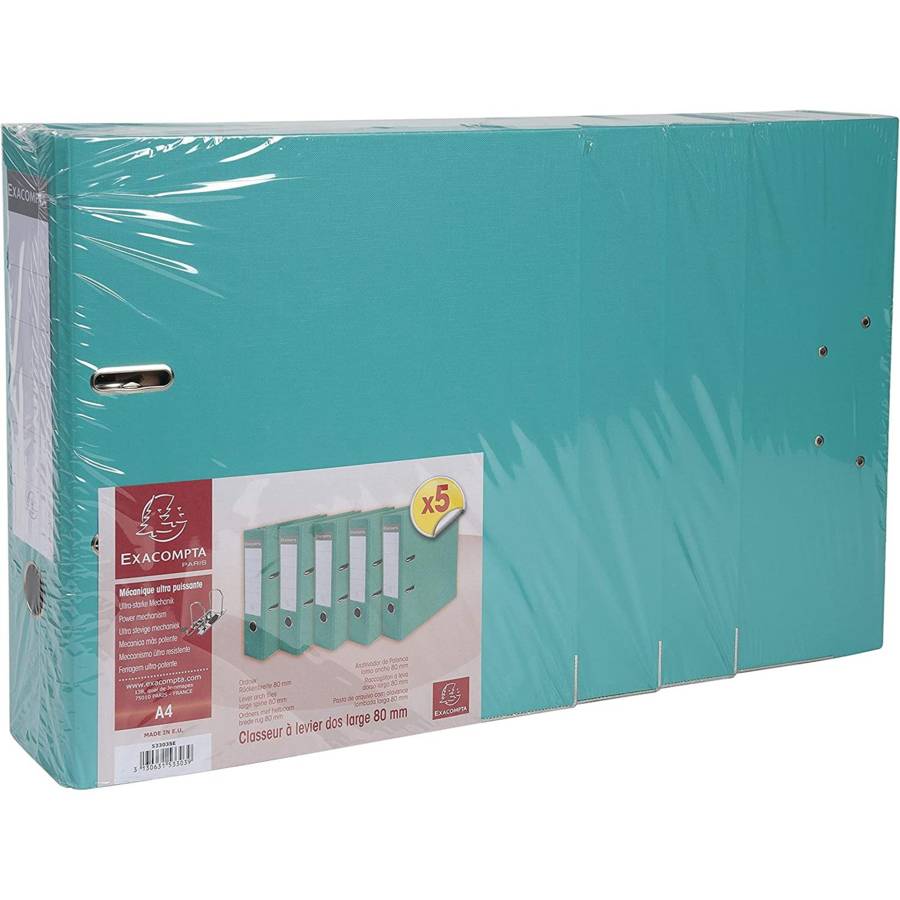 Pack de 5 Classeurs à levier Premium, A4, 80 mm, turquoise