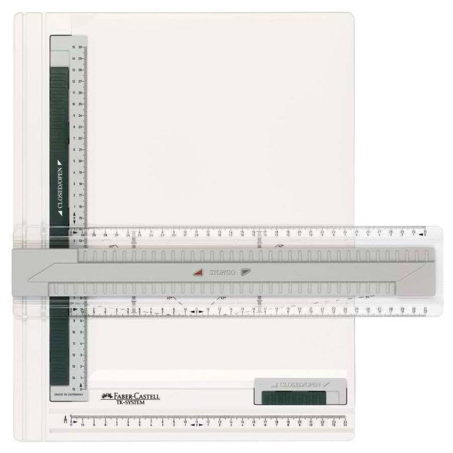 Les planches à dessin de Faber-Castell sont disponibles dans deux versions: A4 et A3. Le plastique de haute qualité est antichoc ainsi que résistant au bris et aux pointes de compas. Les pinces instantanées, commandées d'un doigt, maintiennent fermement le papier. Les règles parallèles et les têtes de dessin, réglables pour les angles, assurent un dessin précis de traits et de lignes d'angle. - Doubles gorges pour un glissement doux de la règle parallèle - Les pinces...