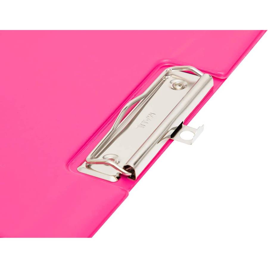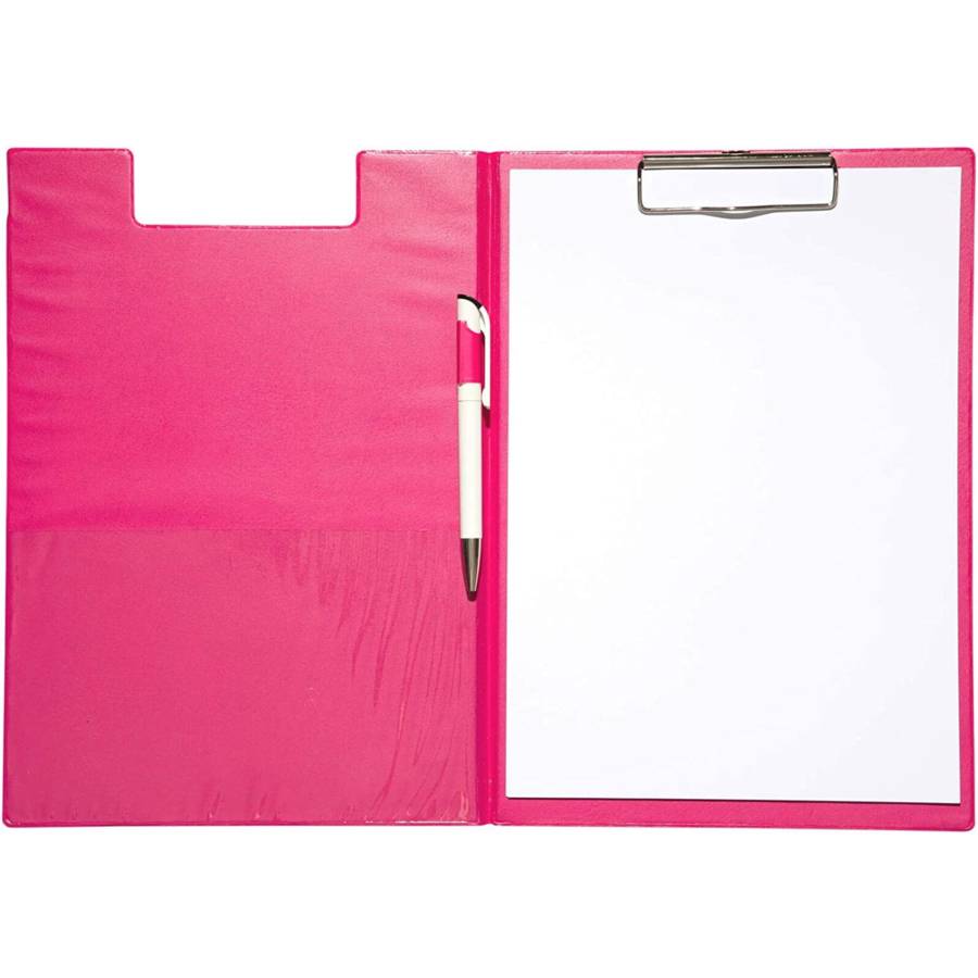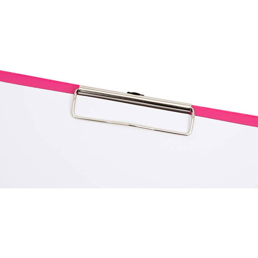 Porte-bloc avec rabat A4 Rose Porte-bloc pratique en carton solide avec revêtement en film plastique pour une utilisation légère et robuste. Fort : pince plate nickelée avec poignée creuse qui facilite l'ouverture du serreur. Pratique : avec œillet de suspension rétractable, par exemple dans le mandrin. Distance de serrage maximale d'environ 0.8cm / 0.8 "(Approx. 40 feuilles A4, 80 g de papier). Le couvercle du porte-bloc protège des regards indiscrets et de la saleté.
