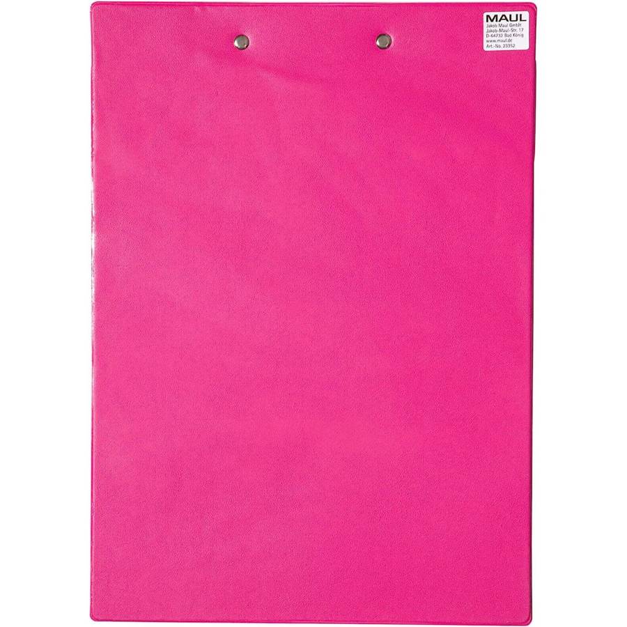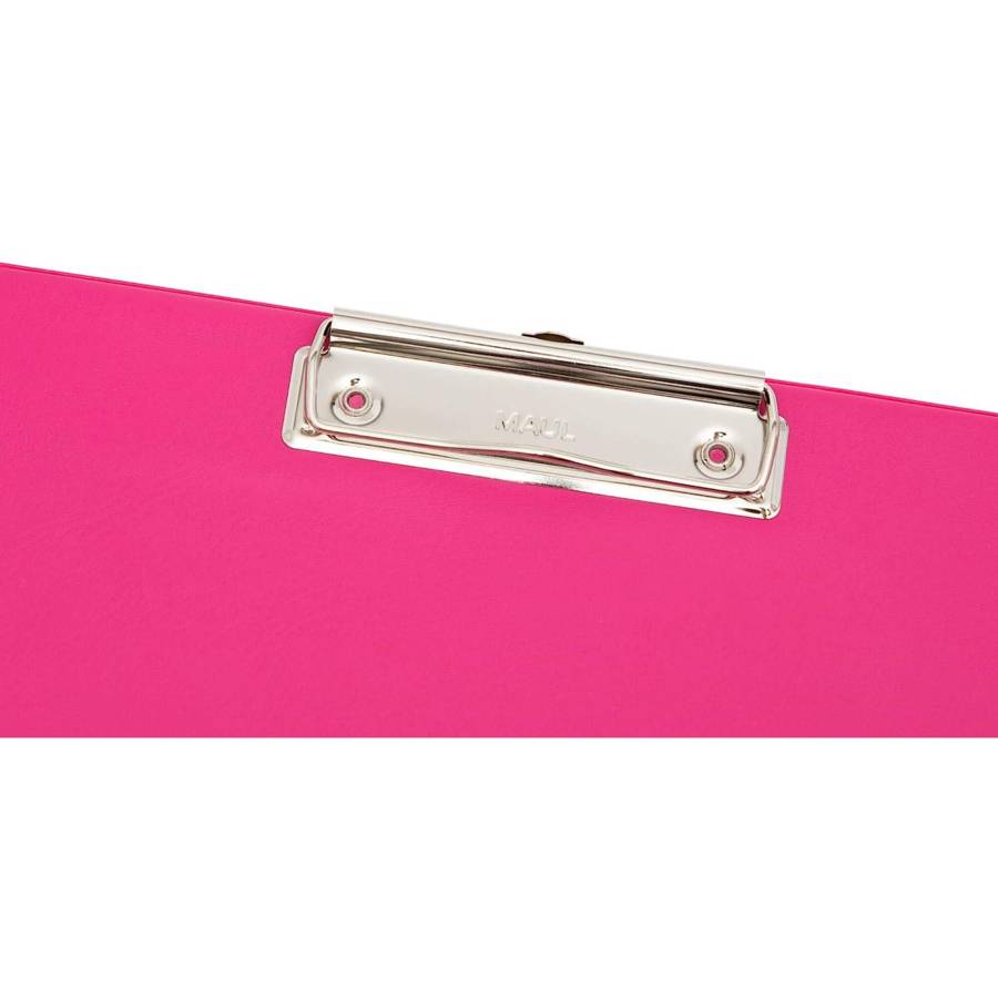 Porte-bloc Maul A4 Rose Porte-bloc pratique en carton solide avec revêtement en film plastique pour plus de légèreté et de robustesse. Fort : pince plate nickelée avec poignée creuse qui facilite l'ouverture du serreur. Pratique : avec œillet de suspension rétractable, par exemple dans le mandrin. Bonne fixation avec une distance maximale de serrage d'environ 0,9 cm (env. 50 feuilles format A4, papier 80 g). Surface nettoyable et résistante aux taches.