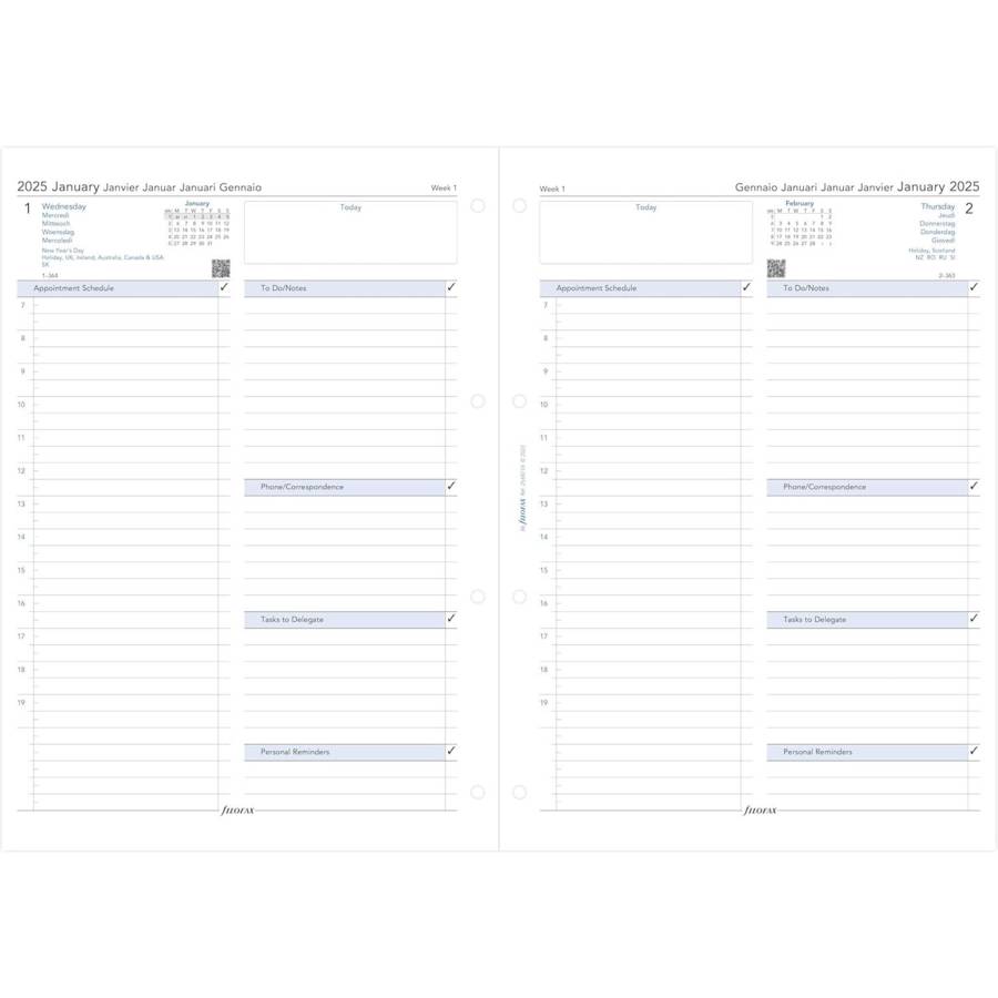 Rechage pour agenda A4 Jour par page - multilingue - 2025