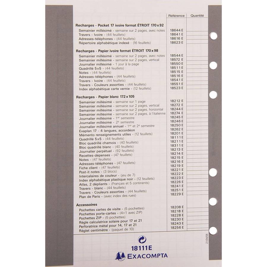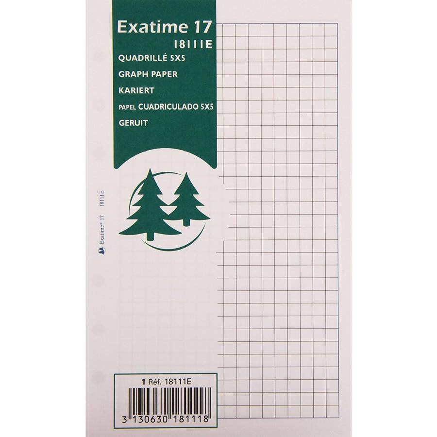 Recharge accessoire Exatime 17 quadrillé 5x5 44 feuillets 172x105 mm