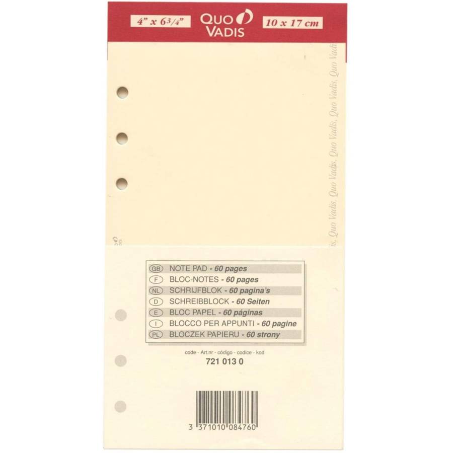 Quo Vadis Accessoires Organiseur BLOC-NOTES Timer 17 Ivoire Recharge 10 x 17 cm