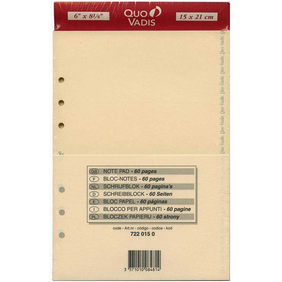 Quo Vadis Accessoires Organiseur BLOC-NOTES Timer 21 Ivoire Recharge 15 x 21 cm