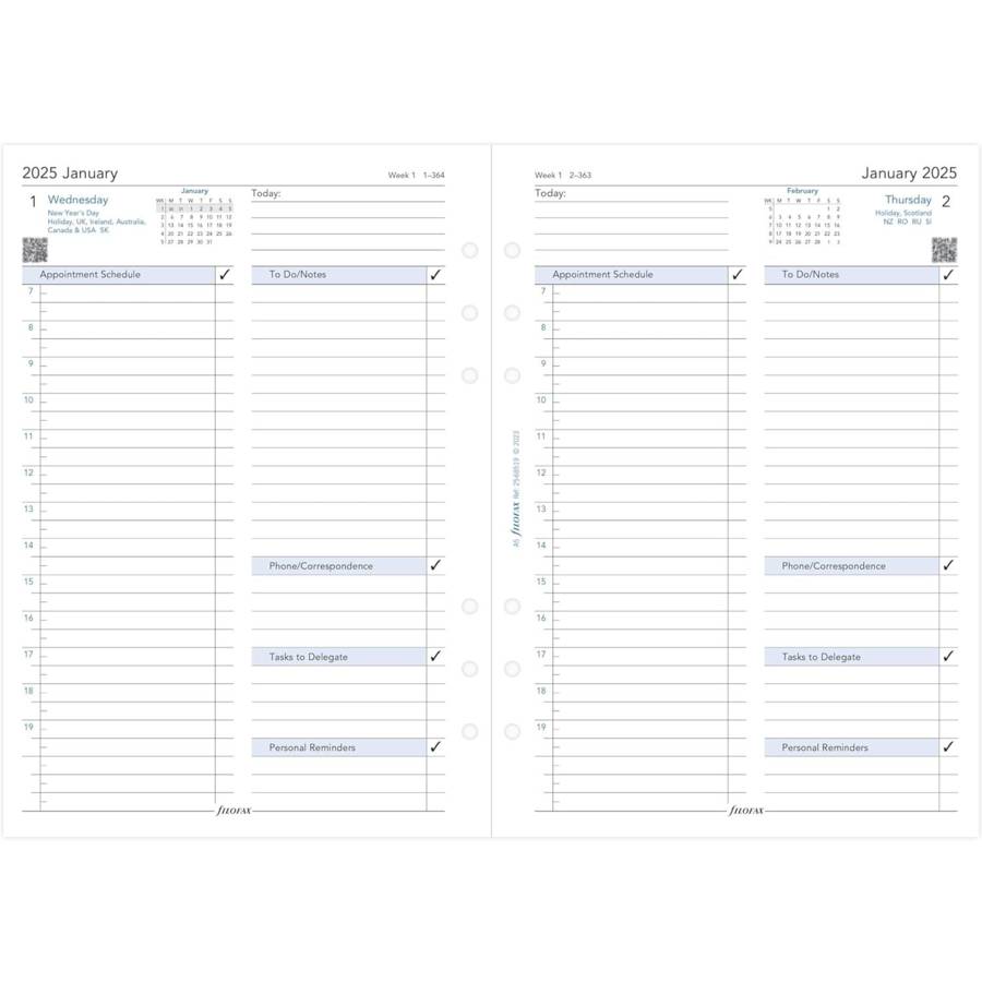 Recharge pour agenda A5 Jour par page - multilingue - 2025