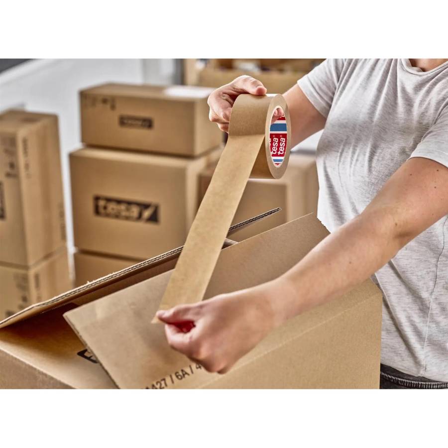 tesa® 4313 est doté d'un support papier, d'une couche antiadhésive sans silicone et d'un système adhésif en caoutchouc synthétique sans solvants. Les joints de tesa® 4313 peuvent résister aux chocs à court terme car l'allongement du papier est très élevé : deux fois plus élevé que les rubans en papier conventionnels comparables. Ce ruban d'emballage en papier peut être utilisé sur une grande variété de qualités de carton. Les joints sont durables car le produit combine une force d'adhérence élevée et une bonne résistance à la traction. Le ruban peut être utilisé manuellement ou avec un dévidoir. Le ruban adhésif de fermeture des cartons existe en havane et en blanc