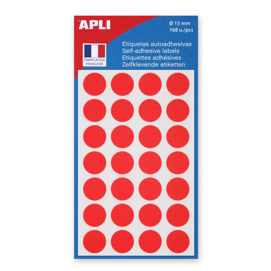 Sachet de 168 étiquettes Gommettes de signalisation Rondes 15 mm Rouge