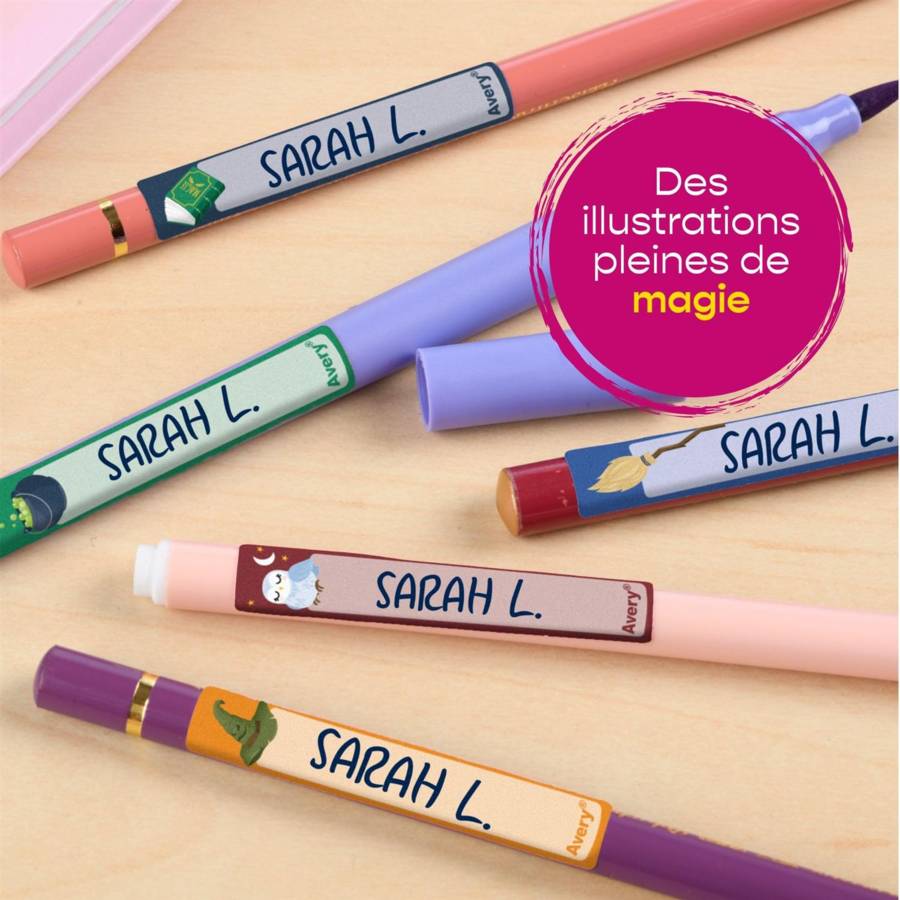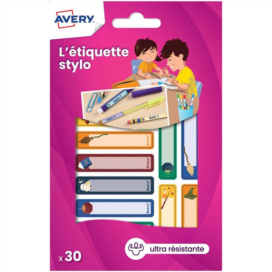 Découvrez les étiquettes autocollantes résistantes Avery, spécialement conçues pour répondre aux besoins exigeants de la rentrée scolaire et pour assurer un marquage efficace de toutes vos fournitures scolaires. Avec un design attrayant, ces étiquettes scolaires personnalisées sont idéales pour identifier stylos, crayons, et feutres. En format compact de 50 x 10 mm, elles s'adaptent parfaitement à tous les types de stylos, qu'il s'agisse de stylo 4 couleur, crayon de couleurs...