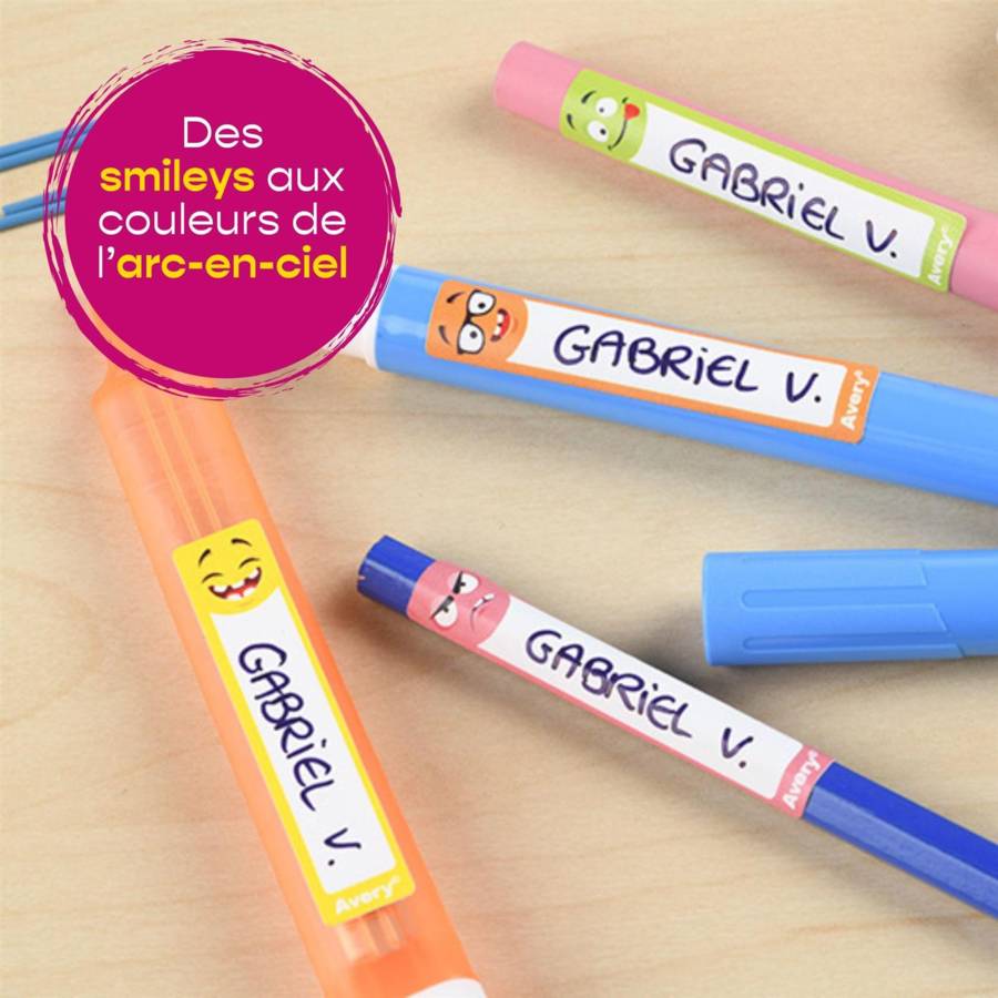 Découvrez les étiquettes autocollantes résistantes Avery, spécialement conçues pour répondre aux besoins exigeants de la rentrée scolaire et pour assurer un marquage efficace de toutes vos fournitures scolaires. Avec un design attrayant, ces étiquettes scolaires personnalisées sont idéales pour identifier stylos, crayons, et feutres. En format compact de 50 x 10 mm, elles s'adaptent parfaitement à tous les types de stylos, qu'il s'agisse de stylo 4 couleur, crayon de couleurs...