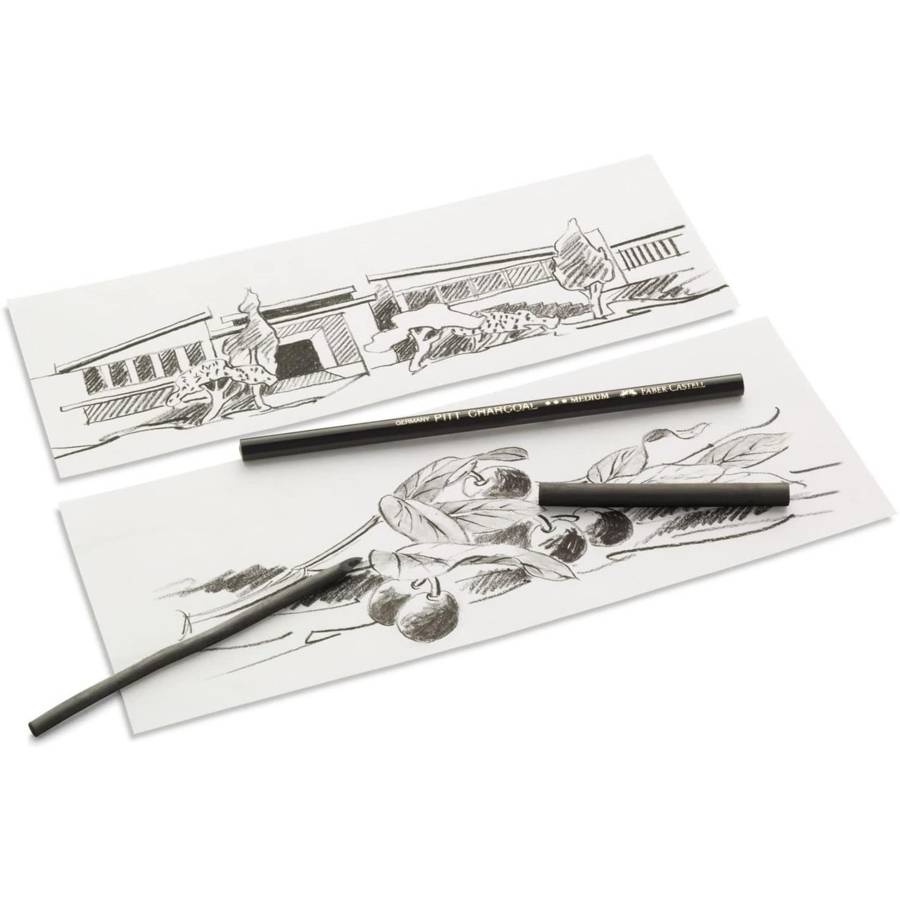 Pour le dessin, le fusain est le matériel le plus ancien du monde. Il se laisse très facilement étaler et estomper, il peut être corrigé facilement et il peut être recouvert de peinture plusieurs fois. Déjà les anciens maîtres étaient fascinés par leur couleur bleuâtre. Les crayons fusains font preuve d'un noir beaucoup plus foncé. Le fusain compressé, mélangé avec de la suie et de l'argile, donne une couleur noir foncé au crayon fusain et permet la production de différentes degrés de dureté. - Fusain naturel Pitt (diamètre: 9-15 mm) - Sans graisse ni huile - Traitnoir-bleu - Disponible à l'unité, en blisters et en sets