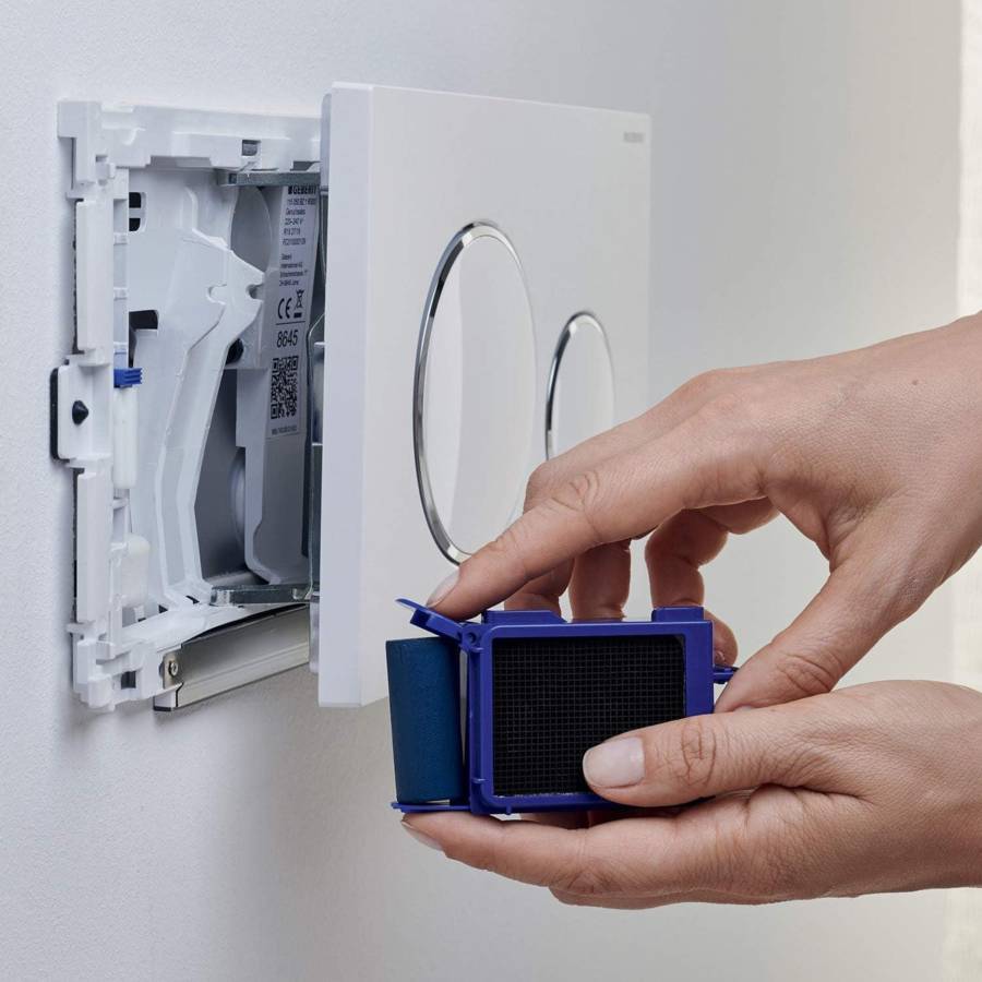Boîte de 8 bâtonnets Geberit DuoFresh Convient au bac de réservoir Geberit Pour la protection contre les dépôts de saleté causés par le calcaire et les calculs urinaires Changement rapide et facile des bâtonnets de citerne, peuvent être insérés sans outils